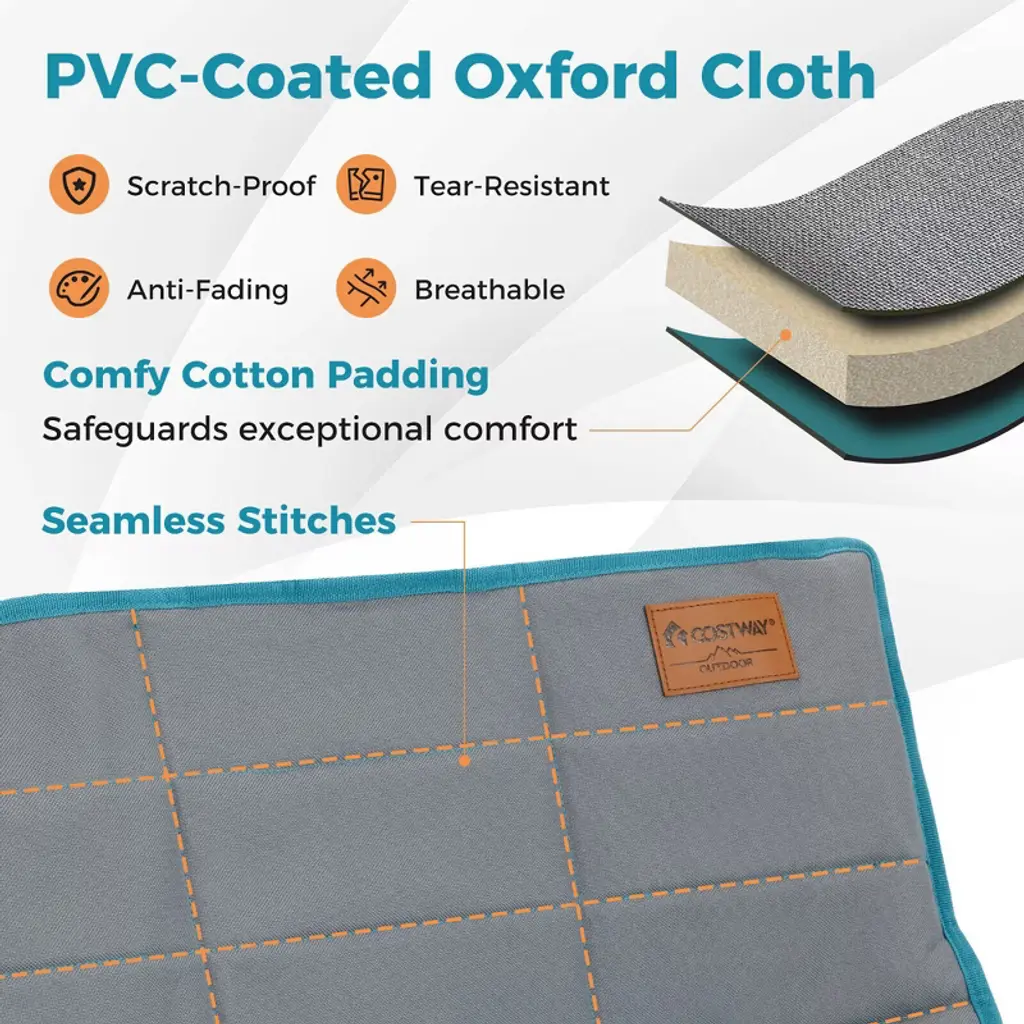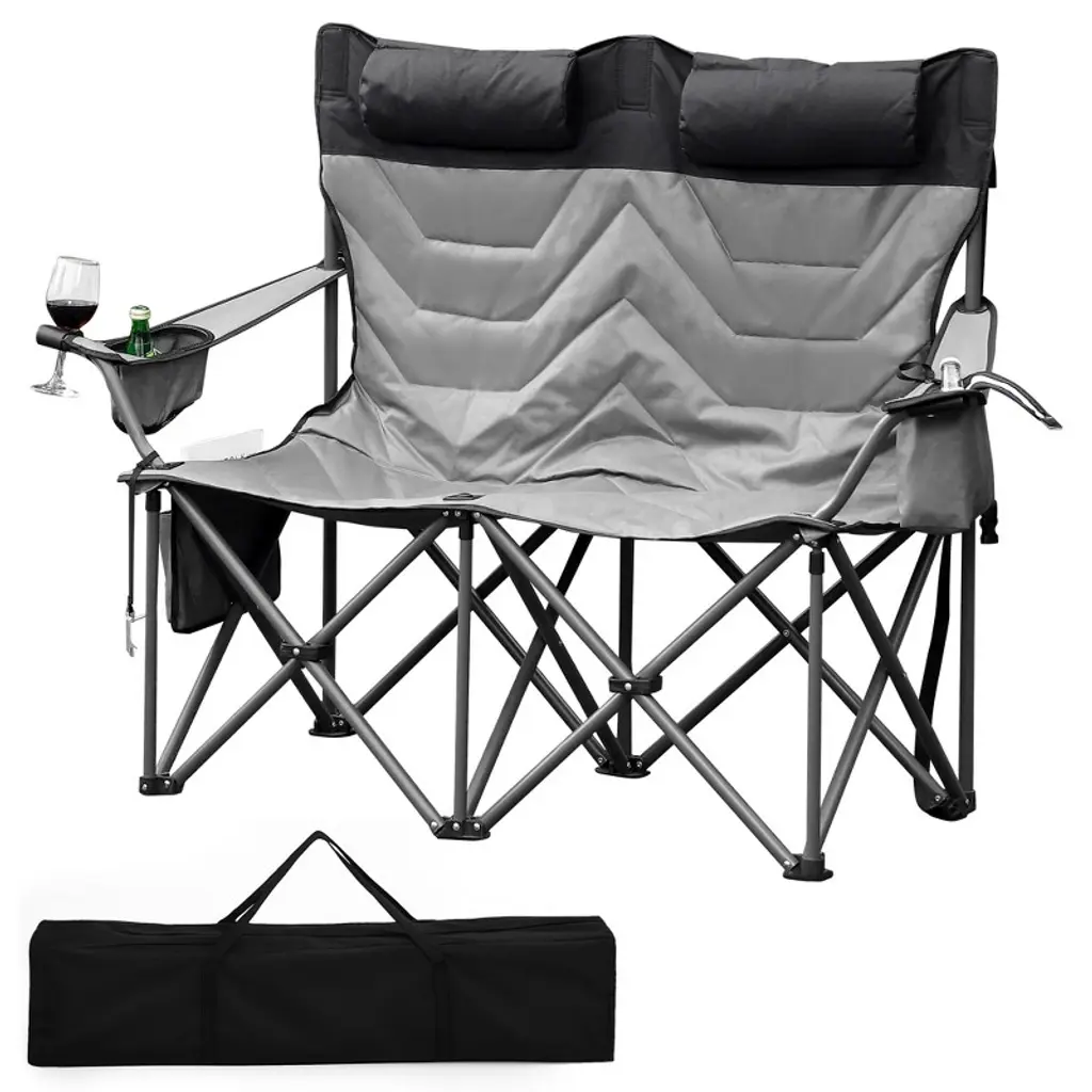 Discover the perfect blend of coziness and stability with our double camp chair, ideal for duo adventurers seeking shared seating bliss at the camping site. Wrapped in the PVC-coated oxford cloth and luxuriously thick cotton cushioning, this piece promises a snuggly retreat, while being scratch-proof, tear-resistant, and anti-fading. The robust metal framework firmly supports up to 660 lbs without a tremble, while the anti-slip foot pads ensure your setup stays firmly in place. To elevate your lounging game, each occupant has their own cup holder for drinks within easy reach. When it's time to hit the road, this lawn chair collapses smoothly and slips into the accompanying storage bag for effortless transport and tidy keeping.FeaturesQuick folding design simplifies portability and storage PVC-coated oxford cloth makes it resist scratch, tear, and fading Has a comfy cotton padding that safeguards exceptional comfortSpecifications:Color: Navy Material: Metal, Oxford Cloth, Cotton Unfolded Dimensions: 59" x 27.5" x 31.5" (W x D x H) Folded Dimension: 9" x 5.5" x 35" (L x W x H) Size of Backrest: 41" x 20.5" (L x H) Size of Seat: 43" x 18.5" (L x W) Height of Seat: 13.5" Length of Armrests: 25.5" Height of Armrests: 20" Size of Each Cup Holder: 6" x 3.5" (L x W) Max Load Capacity: 660 lbs Net Weight: 17 lbs Package Includes: 1 x Double Camping Chair 1 x Storage Bag 1 x User Guide