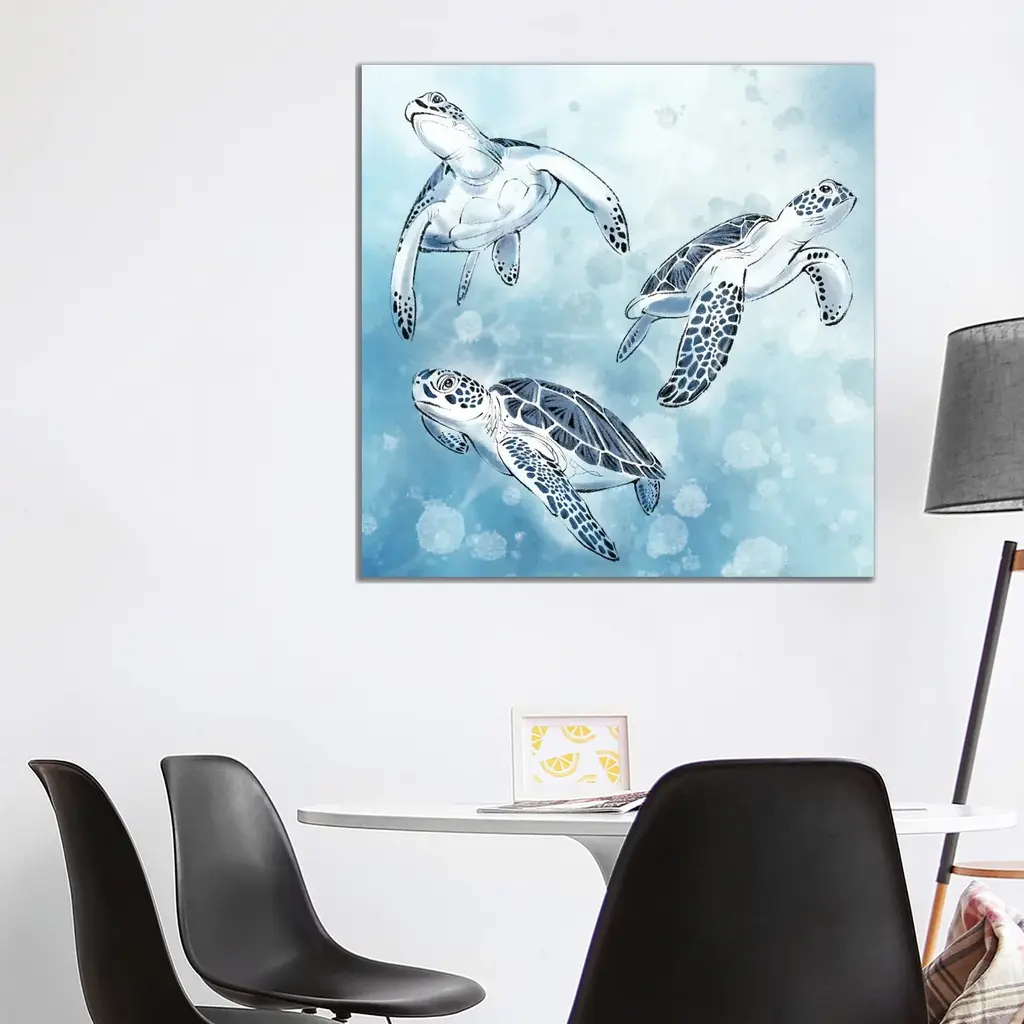 Handpainted sea turtles, rendered in soft hues of aqua and taupe, decorate the white surfaces of VIETRI's Tartaruga Dinnerware collection. Maestro artisan Gianluca Fabbro utilized a unique sponging technique to carefully add detail to each earthenware piece.