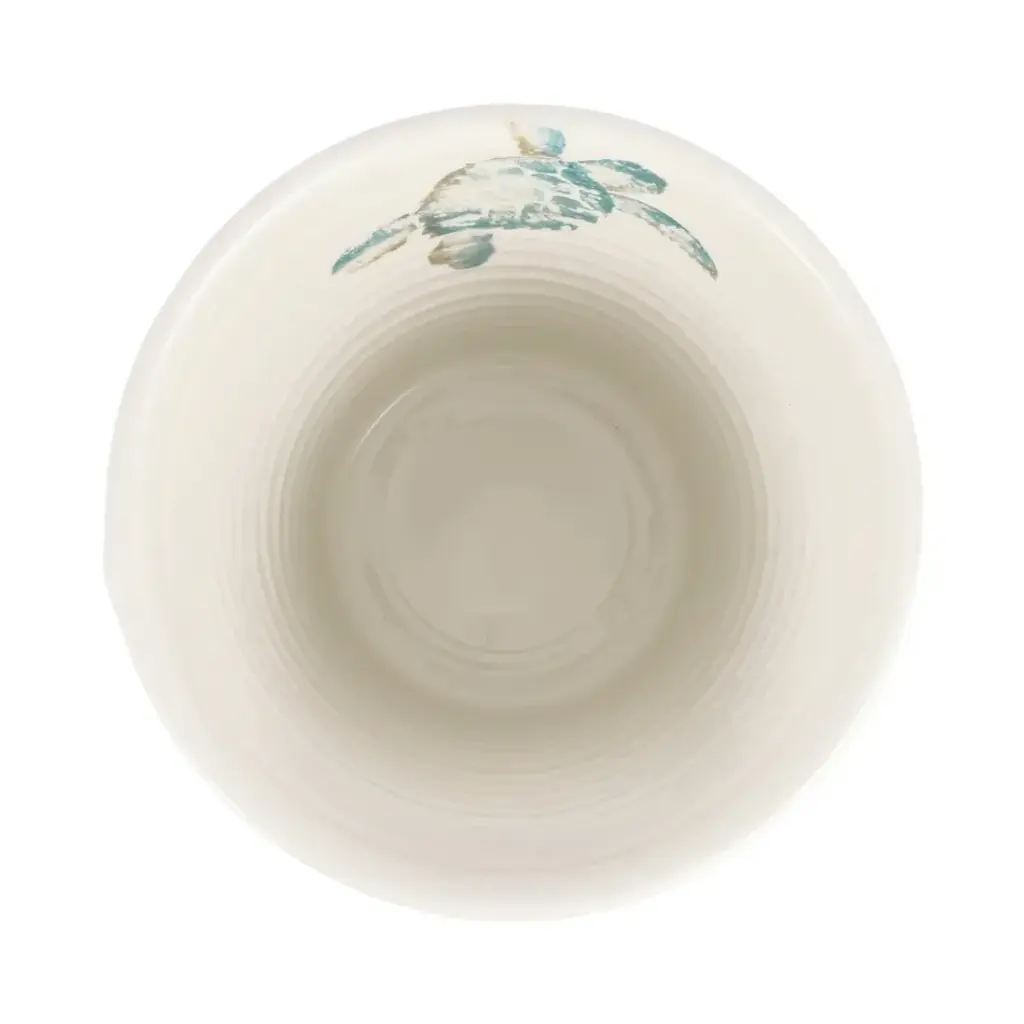 Handpainted sea turtles in hues of aqua and taupe glide across a clean, white canvas on the Tartaruga Ice Bucket. Maestro artisan, Gianluca Fabbro, utilizes a unique sponging technique to carefully add detail to each piece. Since 1983, Vietri has specialized exclusively in Italian handcrafted ceramics, stainless and pewter flatware, mouth blown glassware, lamps, urns and planters. Families of artisans with 3 or 4 generations of history create these special pieces using centuries-old techniques. The subtle color from a paintbrush and the curving stroke of the artist's hand are never repeated in quite the same way, making each piece truly unique.
