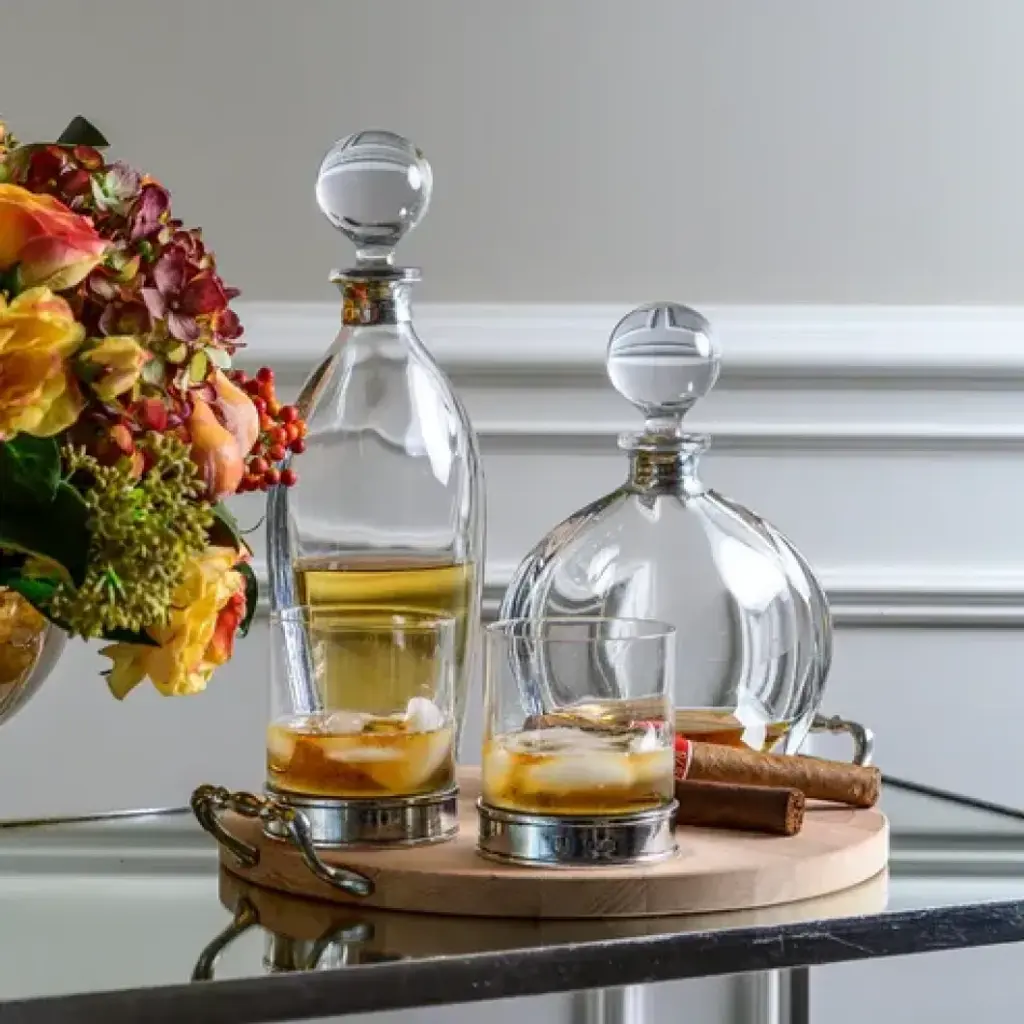 Our striking Taverna Romeo Decanter pairs with our beautiful Juliet Decanter to create the most exquisite pair. Introduced in 2024, these masterpieces are developing quite the following of their own. Crafted with a round glass body, pewter neck and a matching stopper, this thick decanter is perfect for presenting your favorite wine or spirits. (It has so many other wonderful uses too. I keep bubble bath in mine!) Founded in 1997 by Ann Skidmore, Arte Italica is a story of one woman's passion for Italian history, culture, art, and vintage pewter. Today, Arte Italica is one of the leading importers of European tabletop and home accessories products in the United States. Every piece is handmade and designed so that they can easily be mixed and matched to create a timeless, classic, and effortless look.