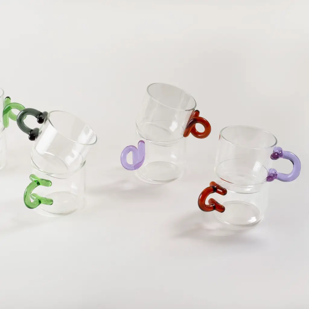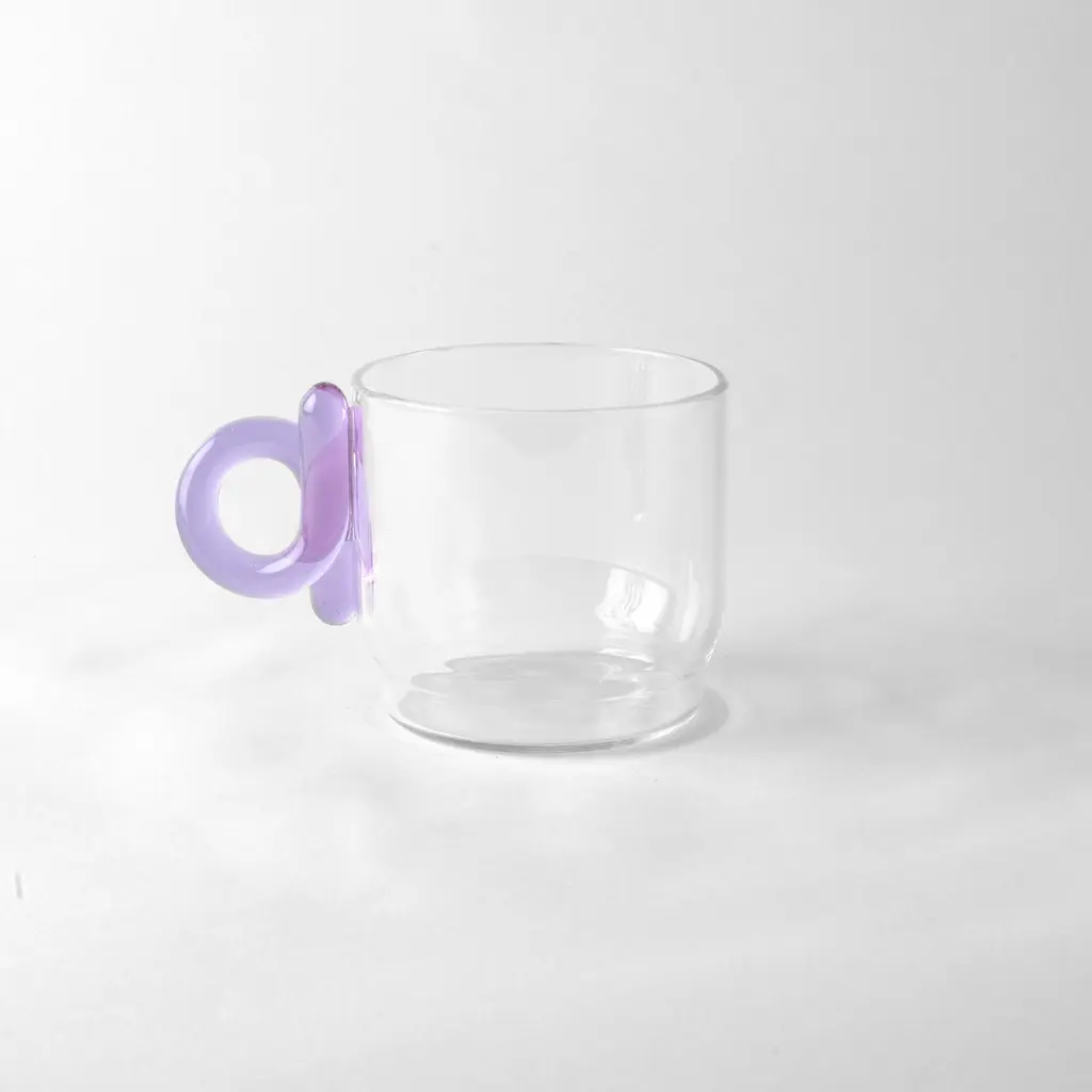 Tea Time Coffee & Tea Glass Cup With Spiral Handle - Pink & Purple