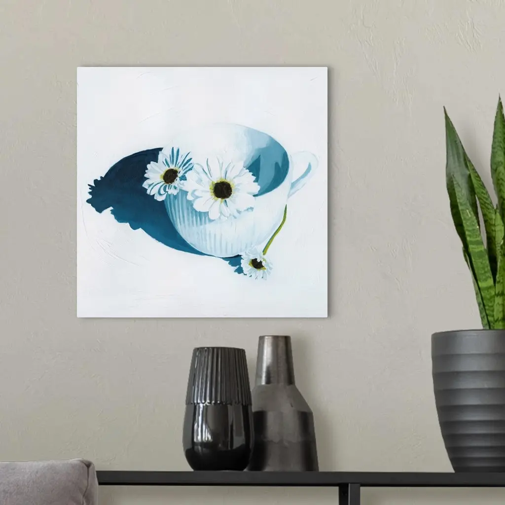 Teacup Daisies I wall art for home and office decor. Discover canvas art prints, photos, mural, big canvas art and framed wall art in GreatBigCanvas.com's varied collections.