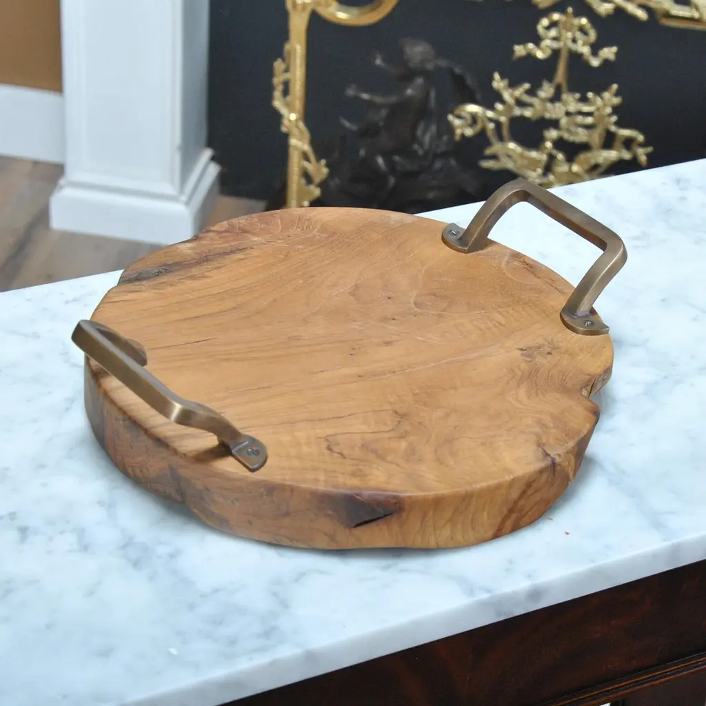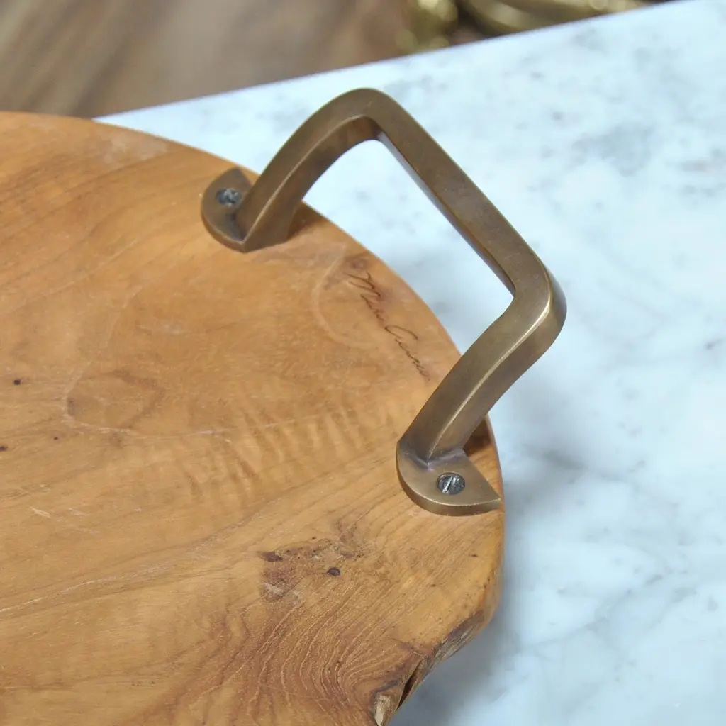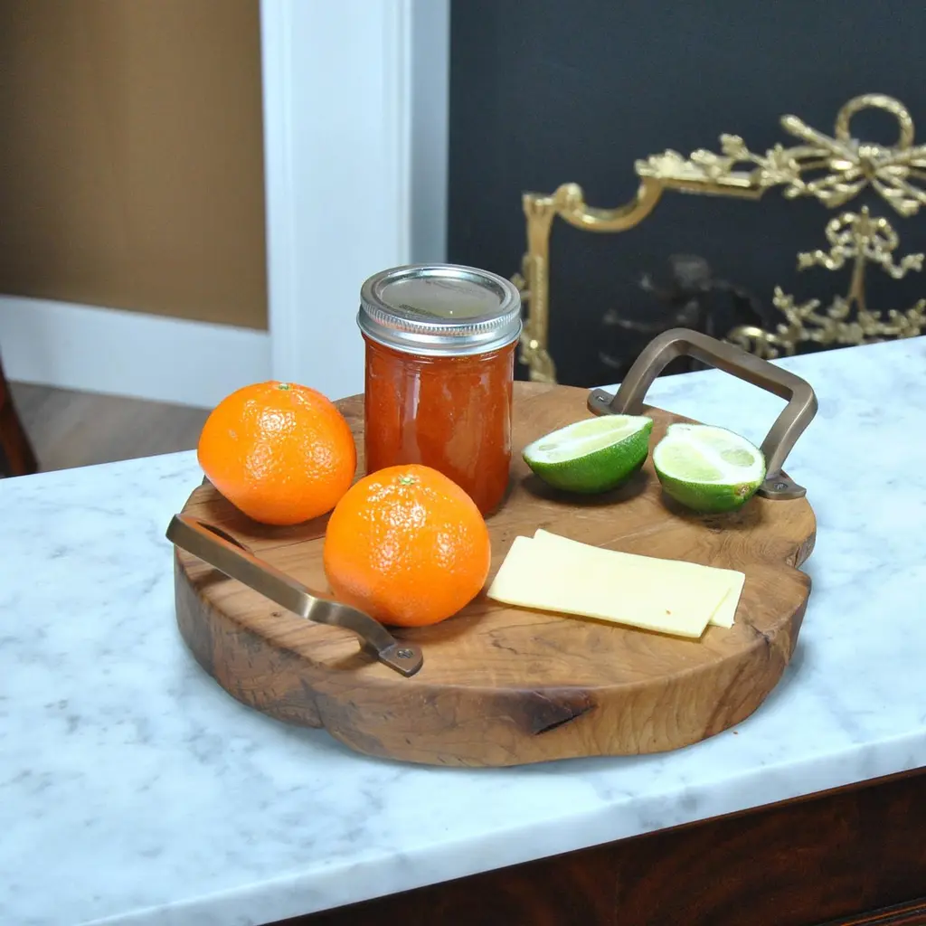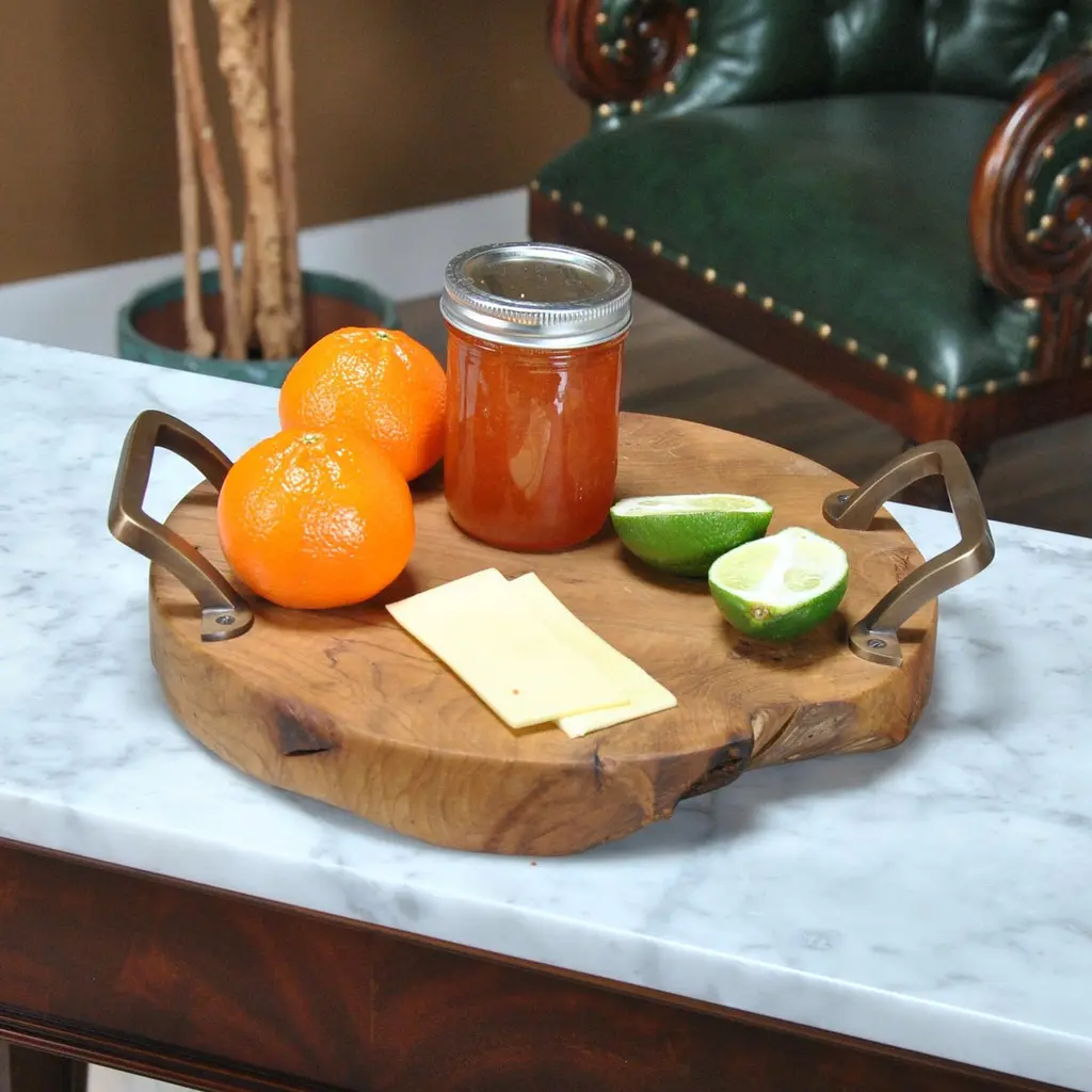 From Niagara Furniture, this Teak Serving Board with Brass Handles is produced from solid teak wood. Decorative and beautiful handles of Brass accentuate the amazing Teak wood. Using teak wood in a cutting / serving board provides a very resilient surface while protecting knives from damage. Finished with food grade mineral oil, a colorless and odorless liquid suitable for items which encounter food.Teak wood is hardy but will last longer with a little bit of special care. We suggest that you hand-wash your item with only mild soap and water and dry right away with a soft cloth. If you avoid air-drying teak items or putting them into either the refrigerator or dishwasher they will look better longer.Premium quality Teak is a close-grained hardwood that is known for being one of the hardest, strongest, and most durable of all woods. Beautifully crafted, smooth to the touch and very solid. Suitable for us with non-stick cookware.Sizes may vary slightly as each item is handmadeNiagara Teak Serving Platter – Brass Handle 12″ x 1.5″