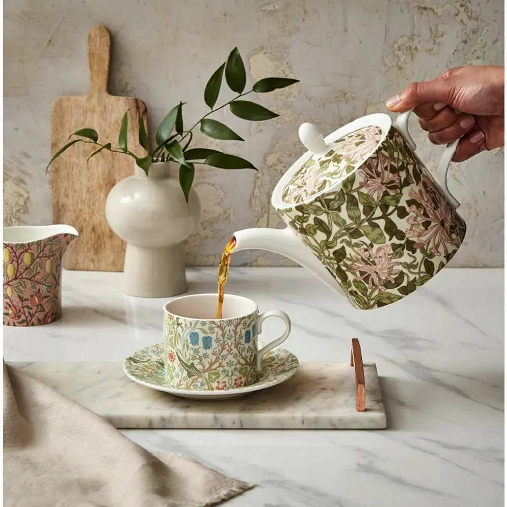 Brew and serve with elegance using the Honeysuckle teapot. Its generous size and heritage pattern create a tea-time centerpiece.