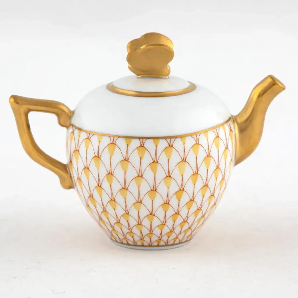 Herend is a sound investment in hand painted art, but not the sort to admire from afar. Its durable hard paste porcelain body and dishwasher-safe attribute make it a breeze to enjoy. Herend is perpetual, with dinnerware patterns never discontinued. Those purchased today will always be available, whether one, ten or a hundred years go by. Herend is timeless, being ever in vogue. Herend is uniquely yours, with dinnerware personalization options ranging from hand painted 24-kt gold monograms to custom-designed sets. Herend keeps excellent company, being owned by royalty, dignitaries and celebrities from all walks of life and sold in very select stores specializing in superior goods and service. Now the biggest porcelain manufactory in Europe, Herend was founded in 1826 to produce earthenware in the small Hungarian village for which it was named. At the time, Hungary was flooded with low-cost pottery, but in 1839, Mor Fischer became the Manufactory’s new owner and he decided to focus on producing dinnerware replacement pieces for Europe’s royal families to complement their valuable porcelain patterns from Germany and the Far East. As his client base grew, Fischer commissioned his artists to begin designing dinnerware patterns of their own. Queen Victoria’s 1851 purchase of a large set for Windsor Castle was a milestone, setting the stage for aristocrats throughout Europe to clamor for Herend in their estates. In the 1850s, Herend added meticulously-crafted figurines to its creations. Herend’s trademark fishnet pattern, which is widely recognized and prized as Herend’s signature design, started in 1858 when an artist who was intrigued with a Chinese plate’s fish scale design painted it onto a rooster figurine to imitate feathers.