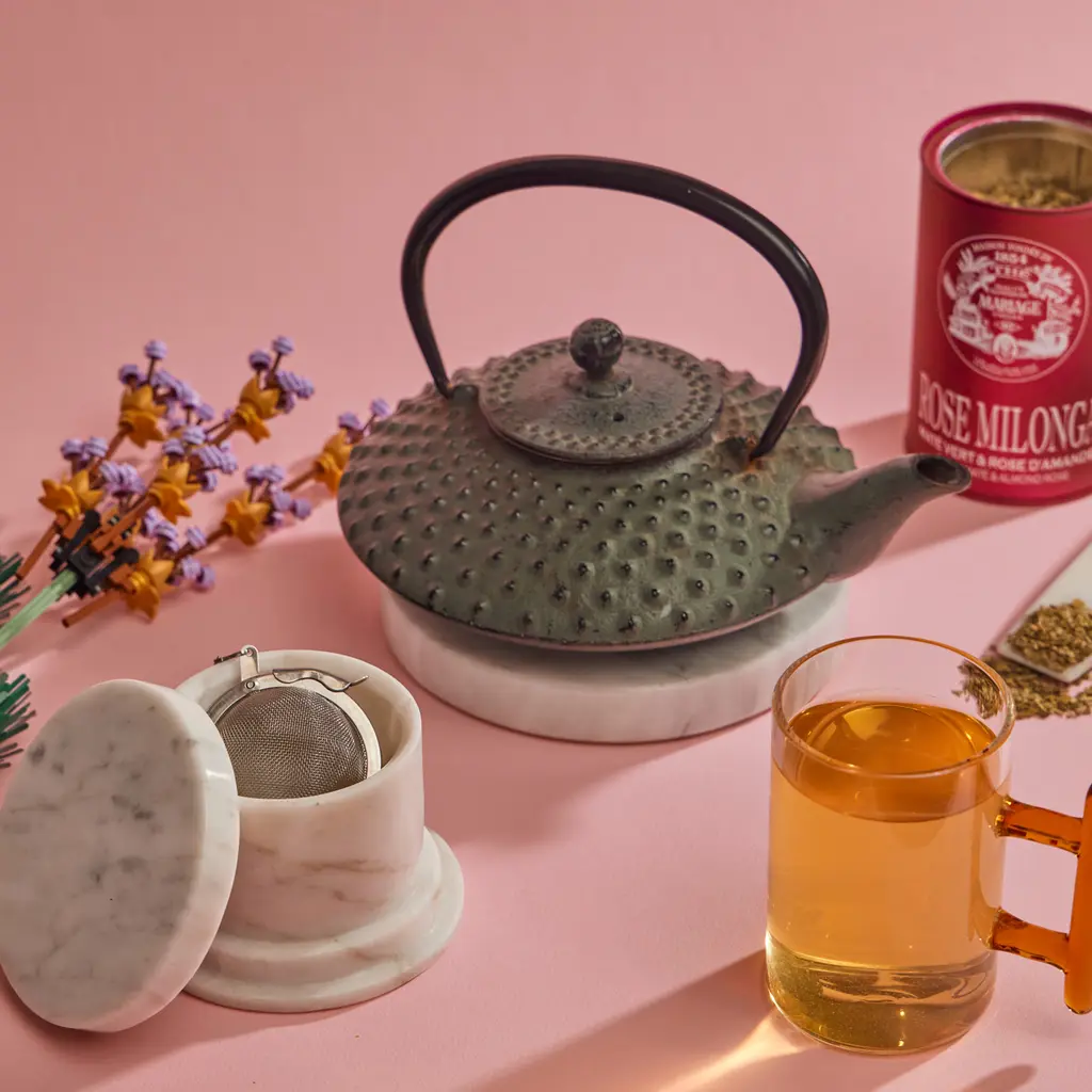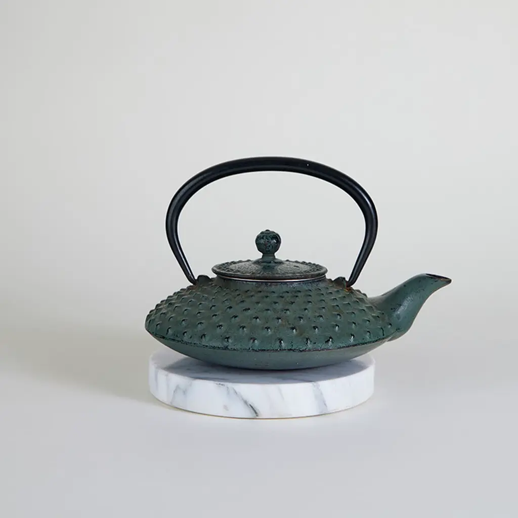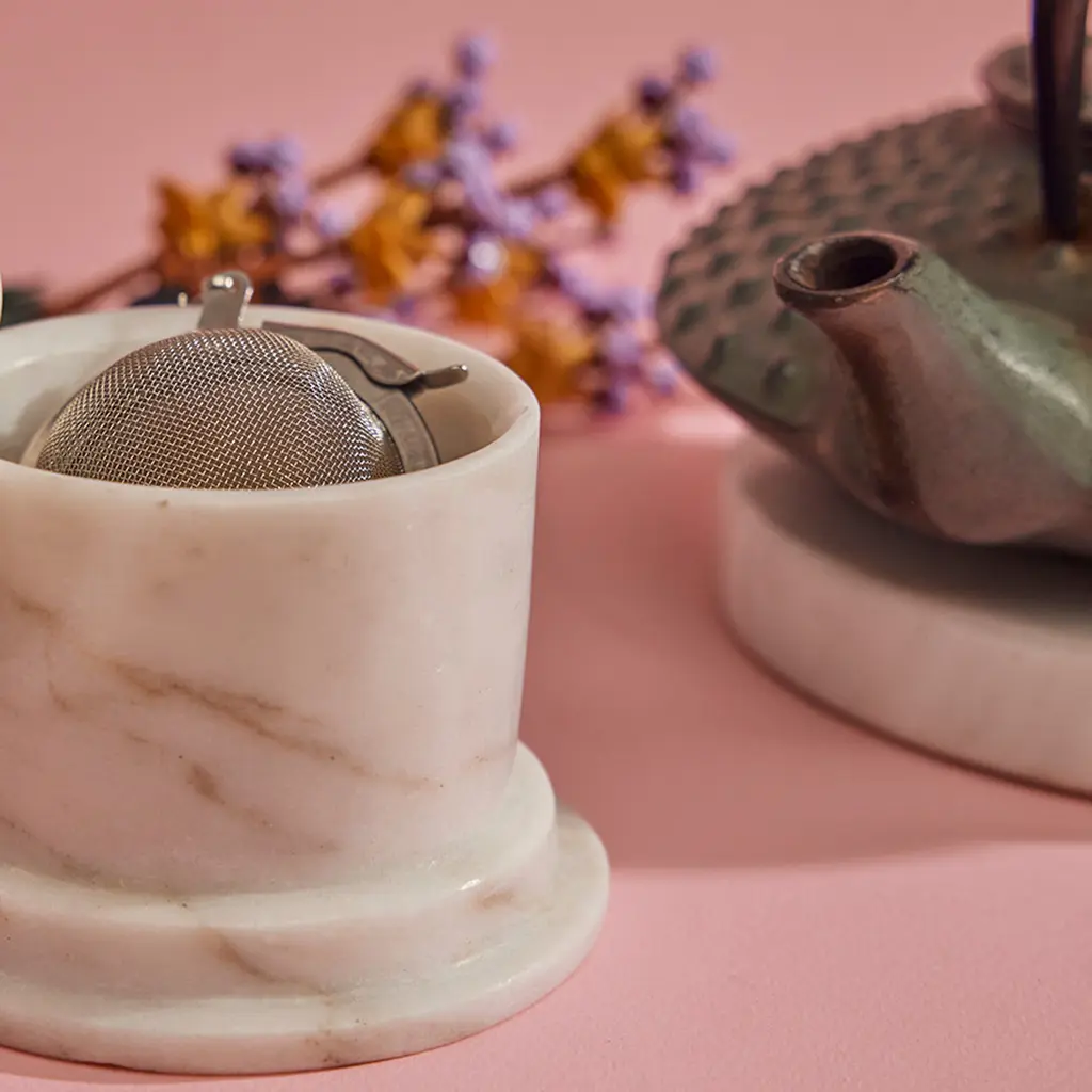 Marble carving stand for a teapot. It holds the warm teapot and preserves the table.A perfect complement to share your favorite tea. Marble trivet handmadeHandmade by Mexican artisans. At And Jacob we take care that the families who work with us receive fair payment for their work.