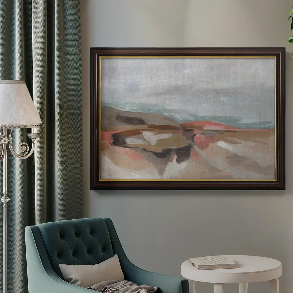 Tectonic Plateau I Premium Framed Canvas- Ready to Hang A Premium Framed Canvas created to last. Framed in distressed wood and available in an array of sizes and colors Featuring a beveled a solid wood stretcher bar, each piece comes ready to hand 3 SIZES AVAILABLE 16''X20'' - Overall Size 18'X27'' - Overall Size 24''x36'' - Overall Size Each piece is made to order. Each piece comes with hanging hardware. Made in the USA Ready to Hang Giclee Paper Print Acrylic Glass Beveled Matt Board