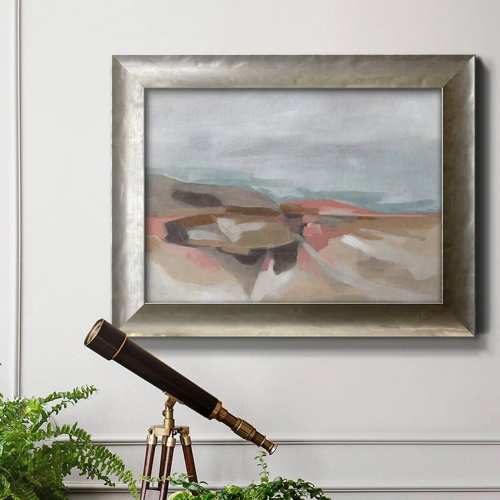 Tectonic Plateau I Premium Framed Canvas- Ready to Hang A Premium Framed Canvas created to last. Framed in distressed wood and available in an array of sizes and colors Featuring a beveled a solid wood stretcher bar, each piece comes ready to hand 3 SIZES AVAILABLE 16''X20'' - Overall Size 18'X27'' - Overall Size 24''x36'' - Overall Size Each piece is made to order. Each piece comes with hanging hardware. Made in the USA Ready to Hang Giclee Paper Print Acrylic Glass Beveled Matt Board