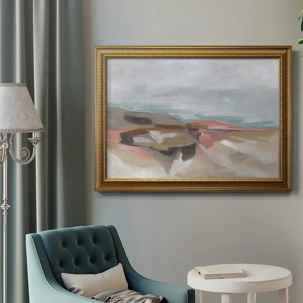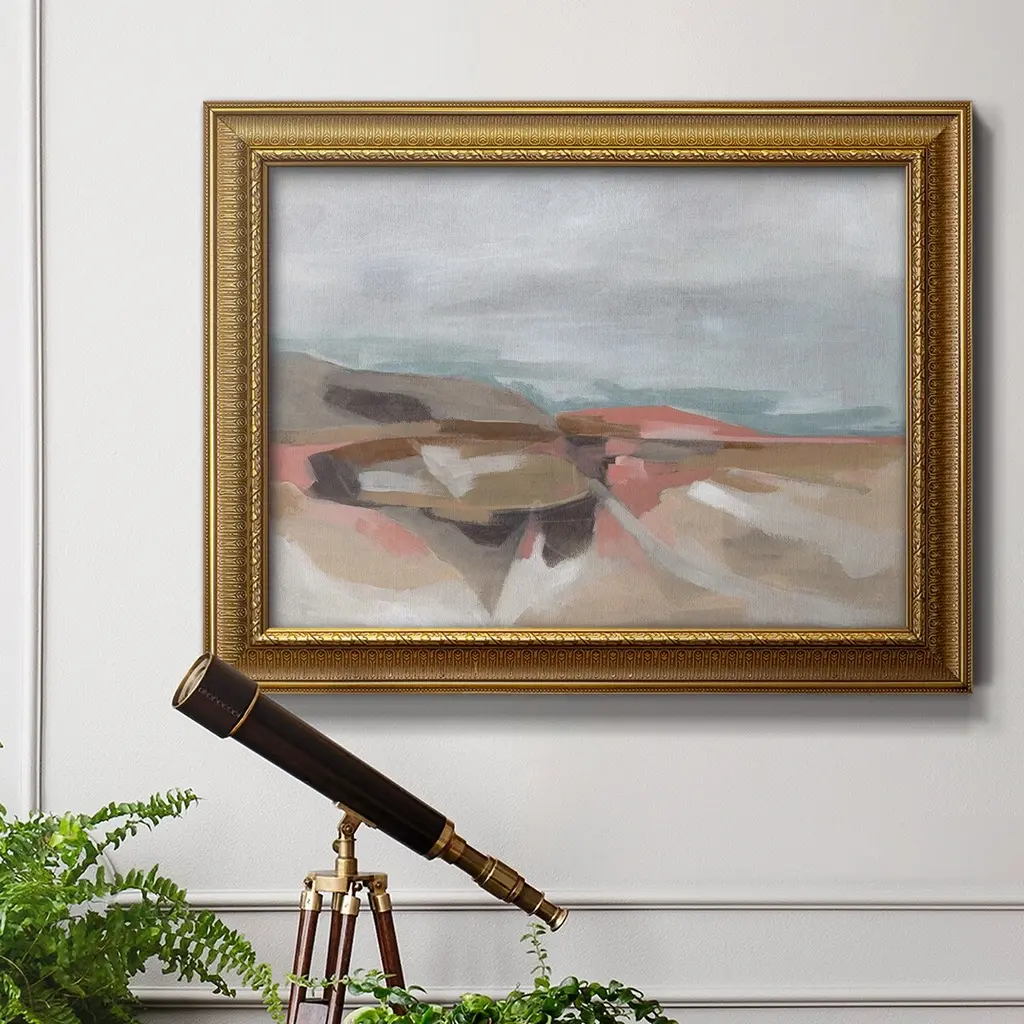 Tectonic Plateau I Premium Framed Canvas- Ready to Hang A Premium Framed Canvas created to last. Framed in distressed wood and available in an array of sizes and colors Featuring a beveled a solid wood stretcher bar, each piece comes ready to hand 3 SIZES AVAILABLE 16''X20'' - Overall Size 18'X27'' - Overall Size 24''x36'' - Overall Size Each piece is made to order. Each piece comes with hanging hardware. Made in the USA Ready to Hang Giclee Paper Print Acrylic Glass Beveled Matt Board