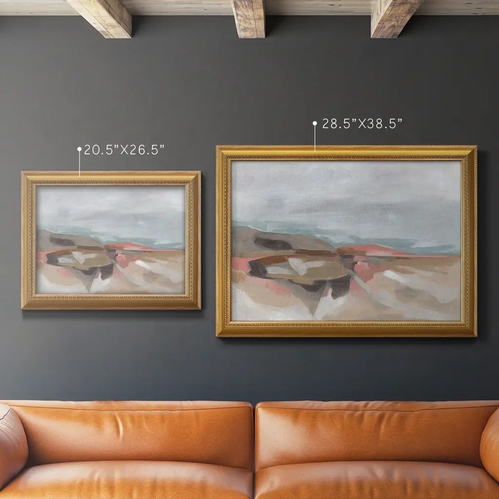 Tectonic Plateau I Premium Framed Canvas- Ready to Hang A Premium Framed Canvas created to last. Framed in distressed wood and available in an array of sizes and colors Featuring a beveled a solid wood stretcher bar, each piece comes ready to hand 3 SIZES AVAILABLE 16''X20'' - Overall Size 18'X27'' - Overall Size 24''x36'' - Overall Size Each piece is made to order. Each piece comes with hanging hardware. Made in the USA Ready to Hang Giclee Paper Print Acrylic Glass Beveled Matt Board
