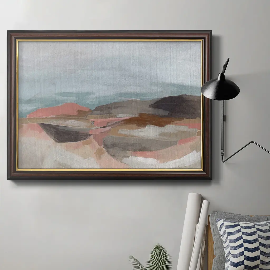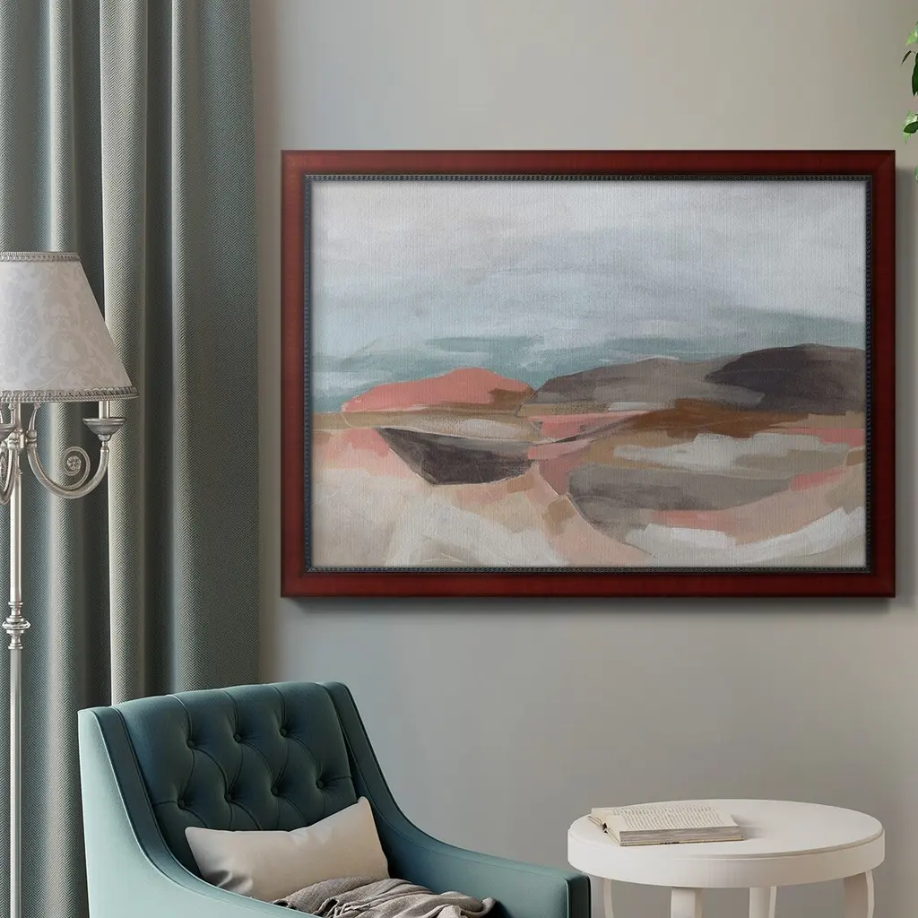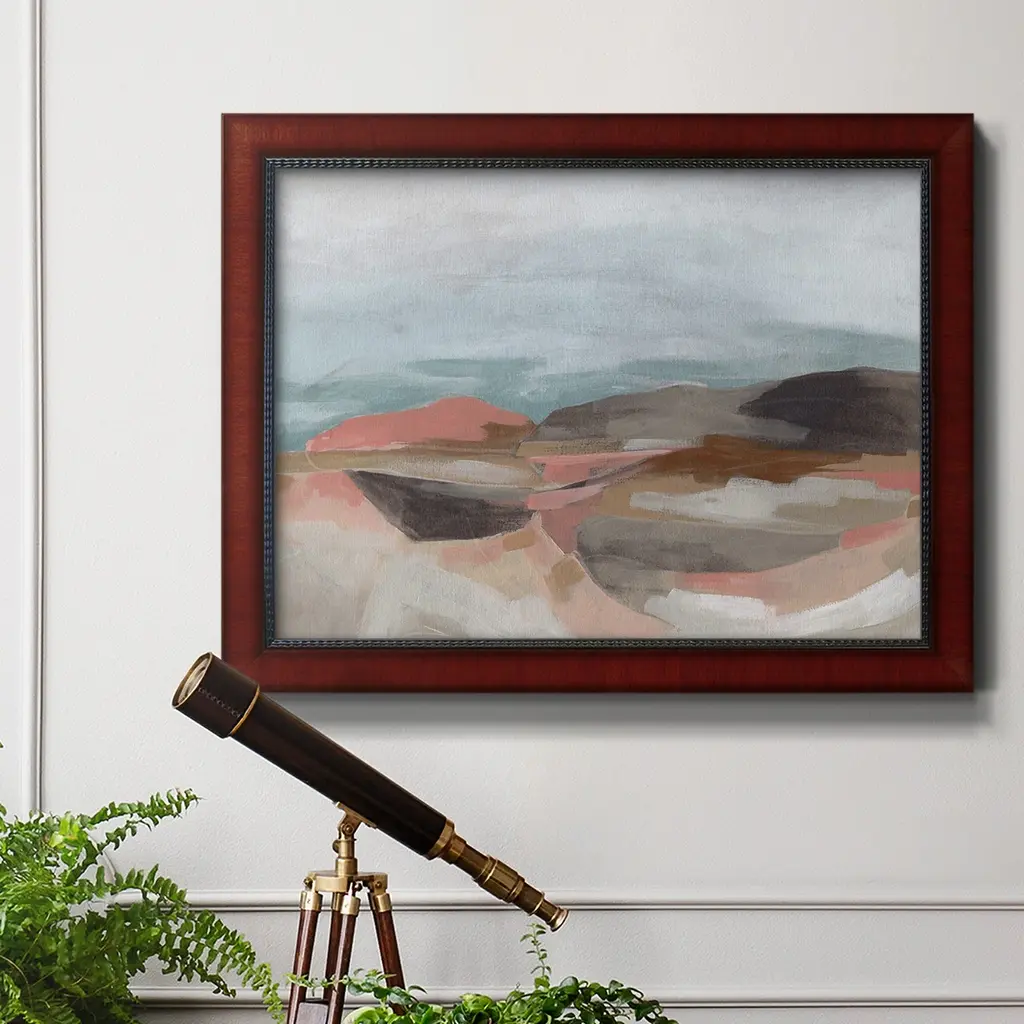 Tectonic Plateau II Premium Framed Canvas- Ready to Hang A Premium Framed Canvas created to last. Framed in distressed wood and available in an array of sizes and colors Featuring a beveled a solid wood stretcher bar, each piece comes ready to hand 3 SIZES AVAILABLE 16''X20'' - Overall Size 18'X27'' - Overall Size 24''x36'' - Overall Size Each piece is made to order. Each piece comes with hanging hardware. Made in the USA Ready to Hang Giclee Paper Print Acrylic Glass Beveled Matt Board