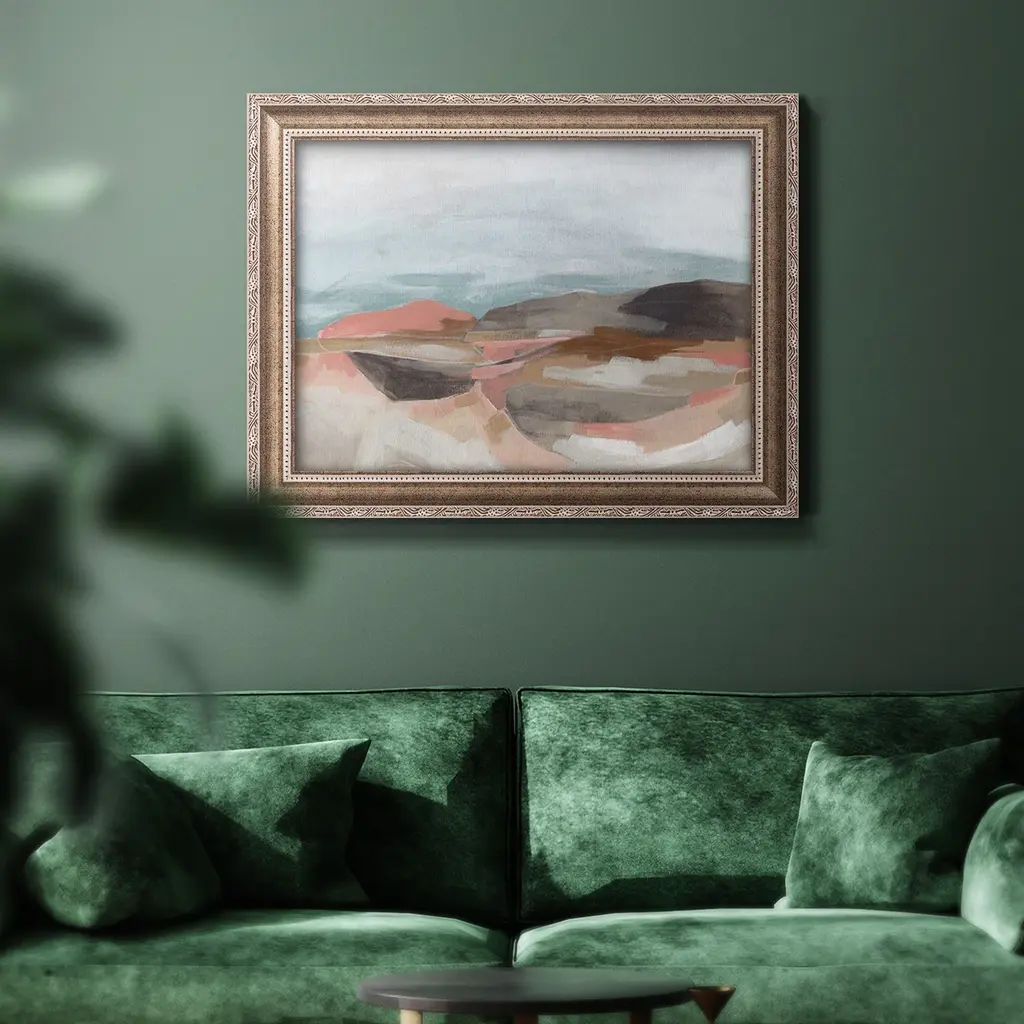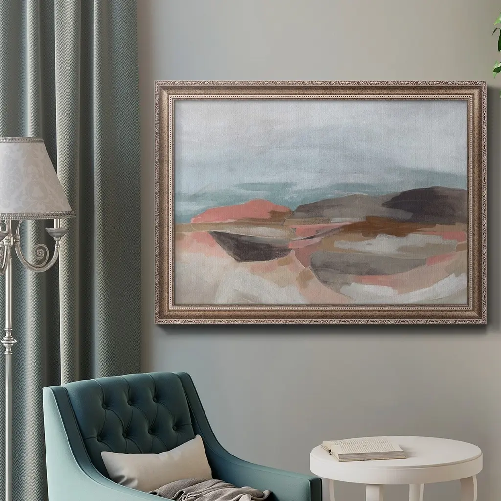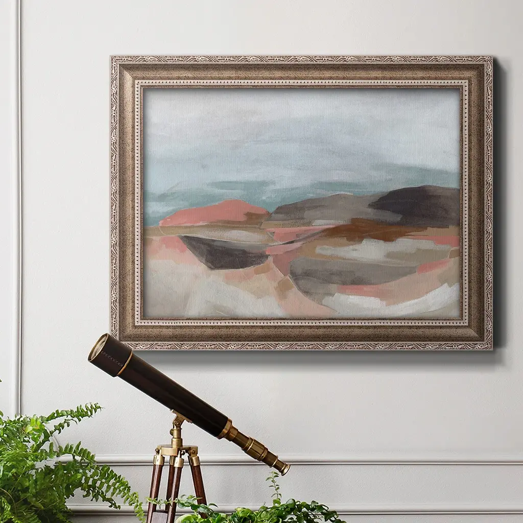 Tectonic Plateau II Premium Framed Canvas- Ready to Hang A Premium Framed Canvas created to last. Framed in distressed wood and available in an array of sizes and colors Featuring a beveled a solid wood stretcher bar, each piece comes ready to hand 3 SIZES AVAILABLE 16''X20'' - Overall Size 18'X27'' - Overall Size 24''x36'' - Overall Size Each piece is made to order. Each piece comes with hanging hardware. Made in the USA Ready to Hang Giclee Paper Print Acrylic Glass Beveled Matt Board
