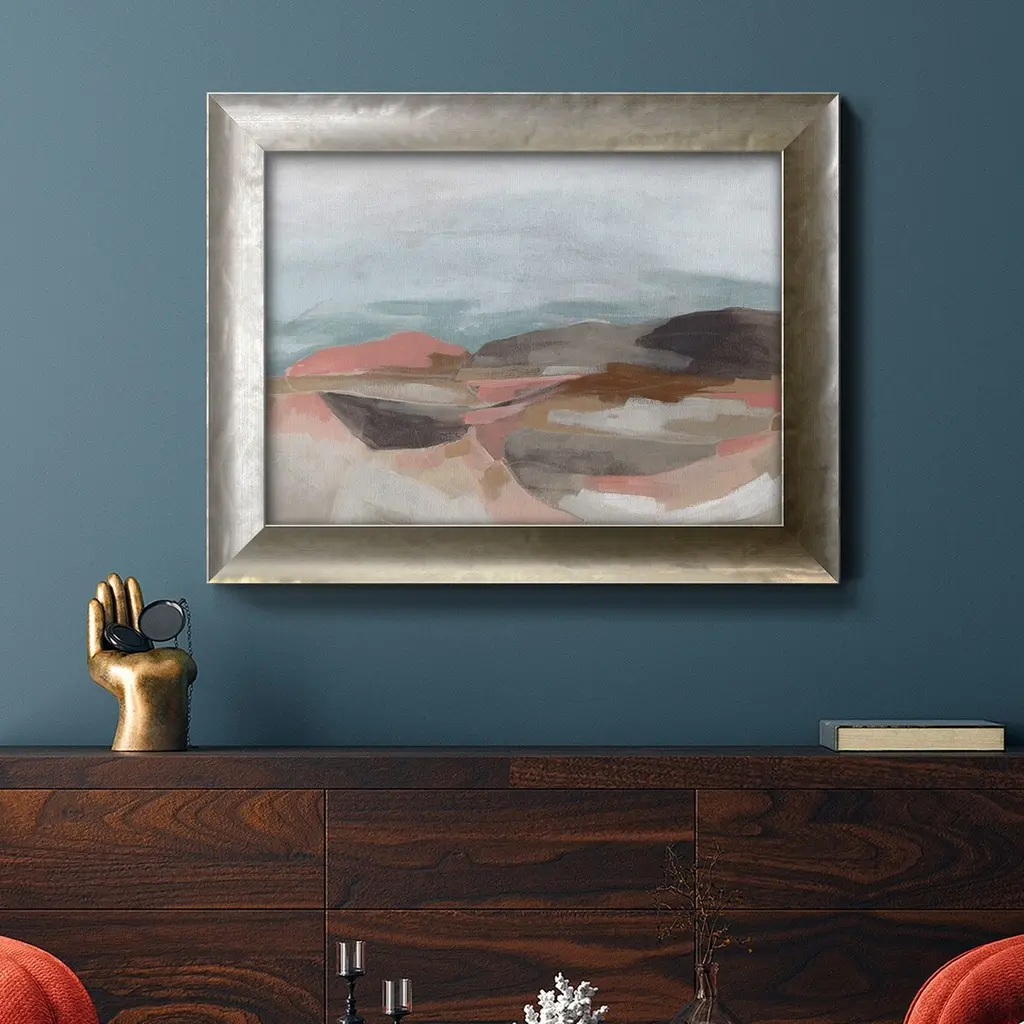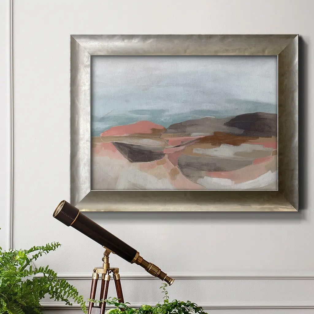 Tectonic Plateau II Premium Framed Canvas- Ready to Hang A Premium Framed Canvas created to last. Framed in distressed wood and available in an array of sizes and colors Featuring a beveled a solid wood stretcher bar, each piece comes ready to hand 3 SIZES AVAILABLE 16''X20'' - Overall Size 18'X27'' - Overall Size 24''x36'' - Overall Size Each piece is made to order. Each piece comes with hanging hardware. Made in the USA Ready to Hang Giclee Paper Print Acrylic Glass Beveled Matt Board