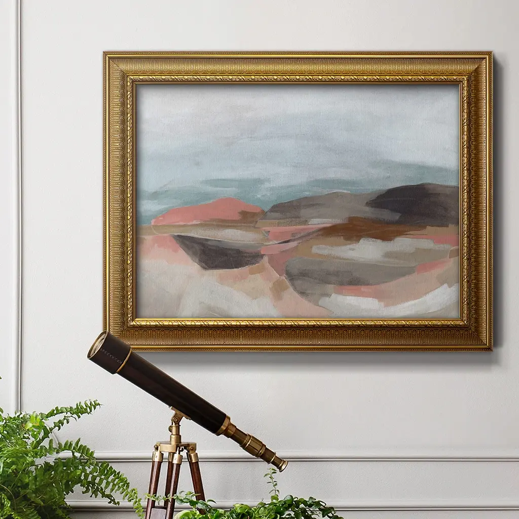 Tectonic Plateau II Premium Framed Canvas- Ready to Hang A Premium Framed Canvas created to last. Framed in distressed wood and available in an array of sizes and colors Featuring a beveled a solid wood stretcher bar, each piece comes ready to hand 3 SIZES AVAILABLE 16''X20'' - Overall Size 18'X27'' - Overall Size 24''x36'' - Overall Size Each piece is made to order. Each piece comes with hanging hardware. Made in the USA Ready to Hang Giclee Paper Print Acrylic Glass Beveled Matt Board