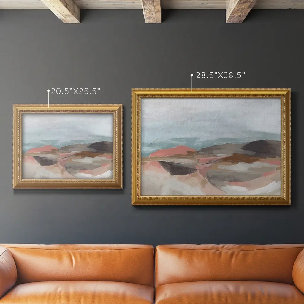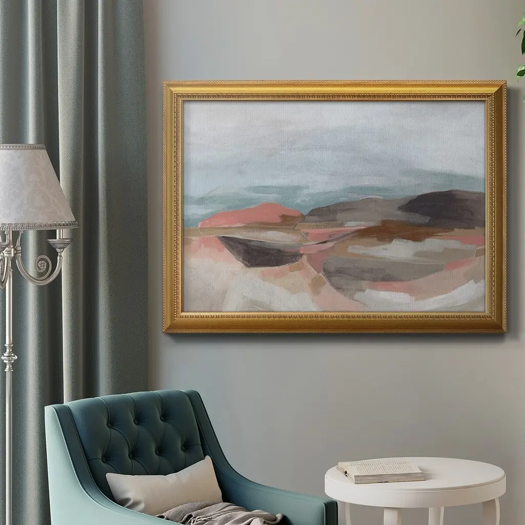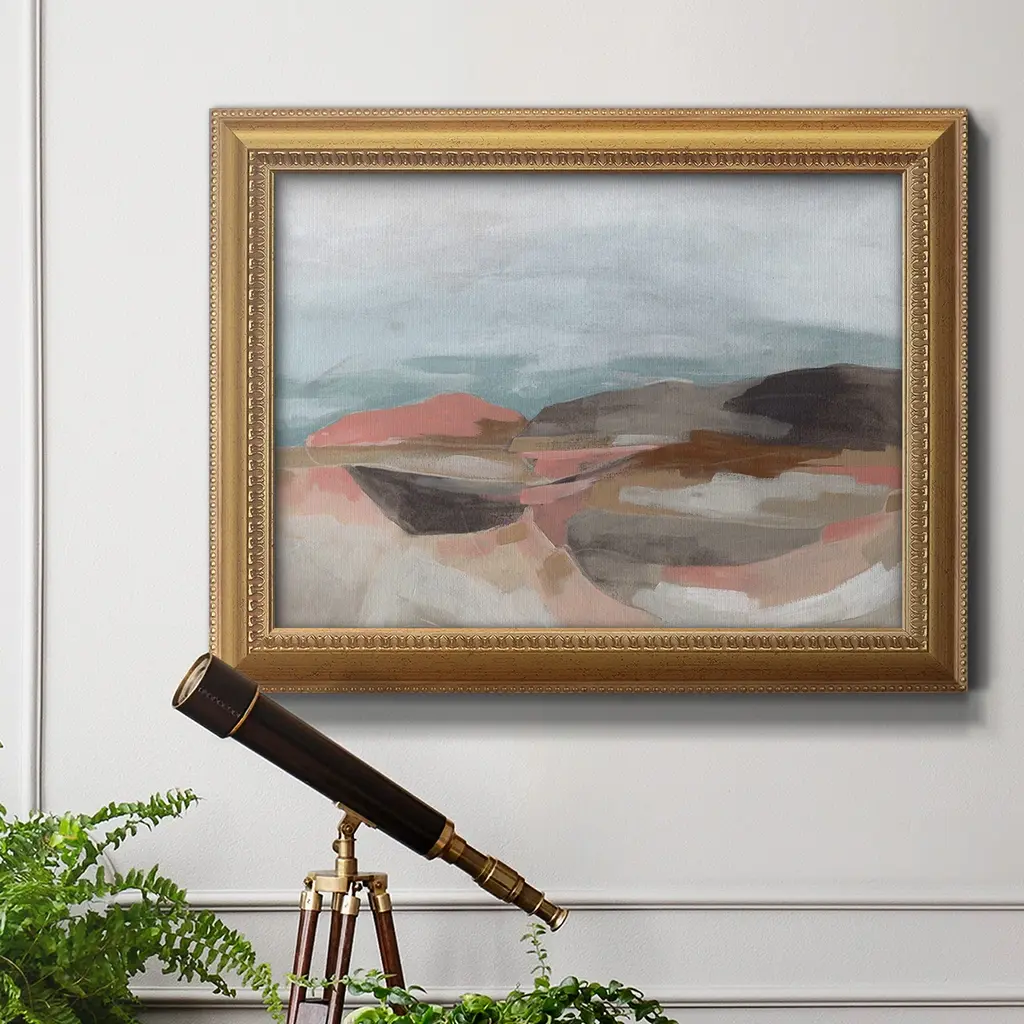 Tectonic Plateau II Premium Framed Canvas- Ready to Hang A Premium Framed Canvas created to last. Framed in distressed wood and available in an array of sizes and colors Featuring a beveled a solid wood stretcher bar, each piece comes ready to hand 3 SIZES AVAILABLE 16''X20'' - Overall Size 18'X27'' - Overall Size 24''x36'' - Overall Size Each piece is made to order. Each piece comes with hanging hardware. Made in the USA Ready to Hang Giclee Paper Print Acrylic Glass Beveled Matt Board