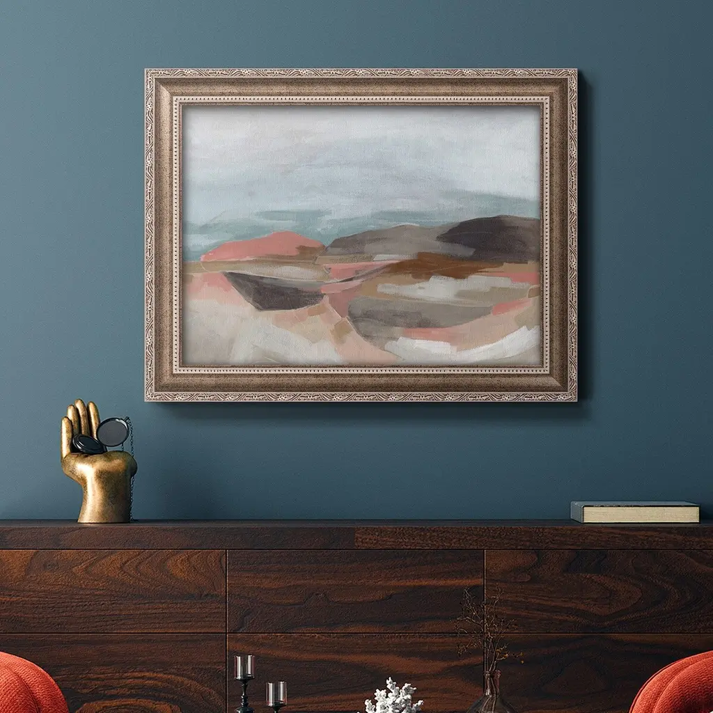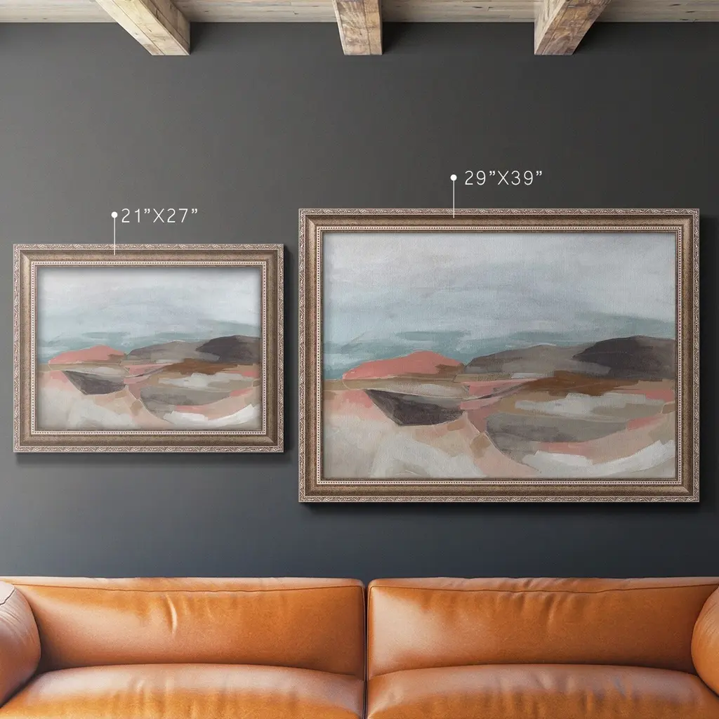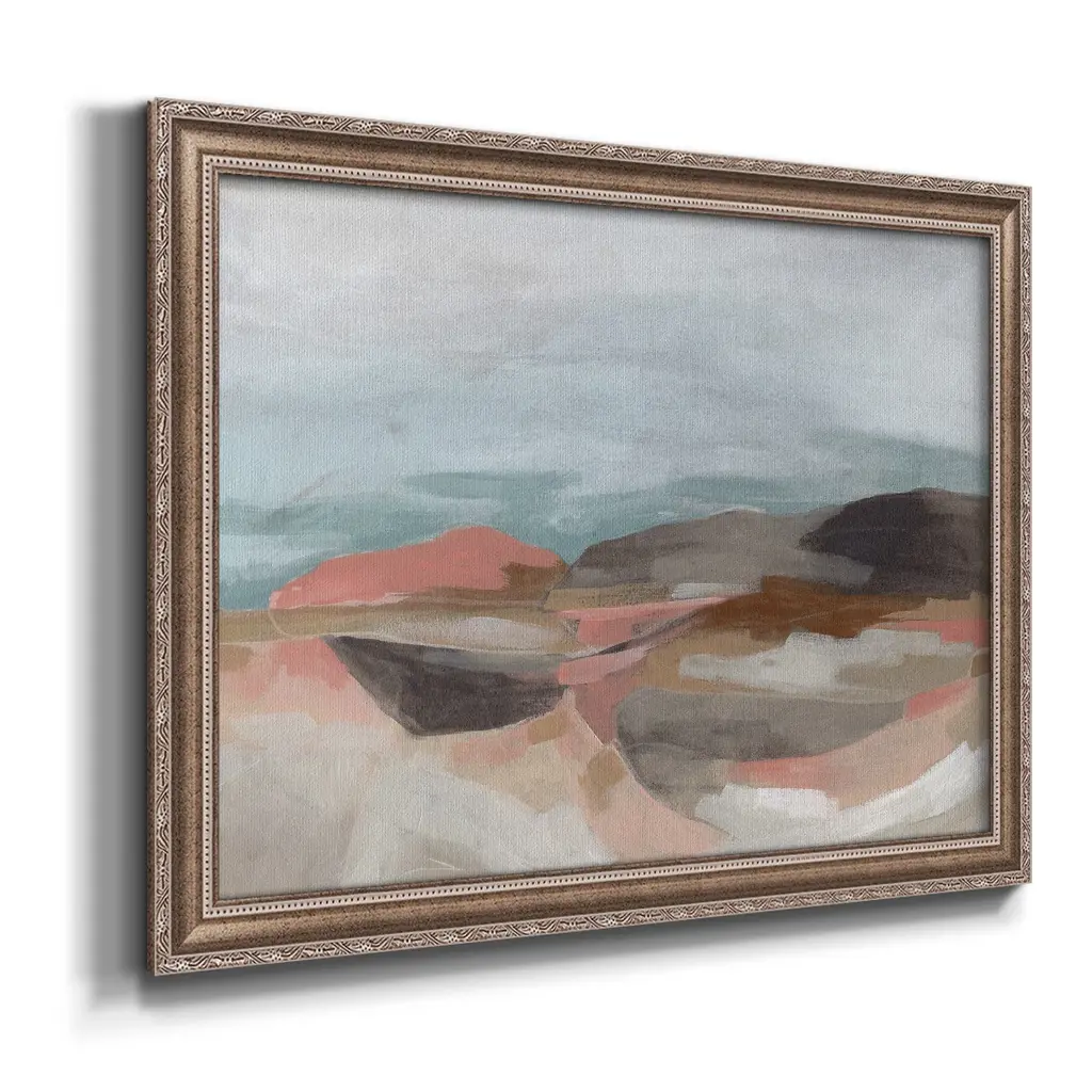 Tectonic Plateau II Premium Framed Canvas- Ready to Hang A Premium Framed Canvas created to last. Framed in distressed wood and available in an array of sizes and colors Featuring a beveled a solid wood stretcher bar, each piece comes ready to hand 3 SIZES AVAILABLE 16''X20'' - Overall Size 18'X27'' - Overall Size 24''x36'' - Overall Size Each piece is made to order. Each piece comes with hanging hardware. Made in the USA Ready to Hang Giclee Paper Print Acrylic Glass Beveled Matt Board