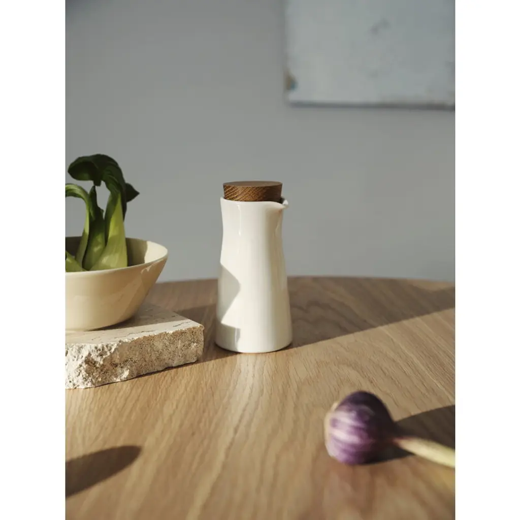 The Teema pitcher, designed by Kaj Franck in 1952, boasts a classic and timeless design that makes it easily combinable with a variety of tableware designs. Originally designed for milk or cream, the Teema pitcher is also ideal for oil, salad dressing or balsamic vinegar. Back when it was designed, the pitcher was considered very innovative: intended to be used as a milk jar, the pitcher fit perfectly between Finnish two-layer windows where it stayed cool, as fridges were still rare in the country. Due to its simple and elegant form, the Teema pitcher seems just as contemporary as it did in the 1950s.