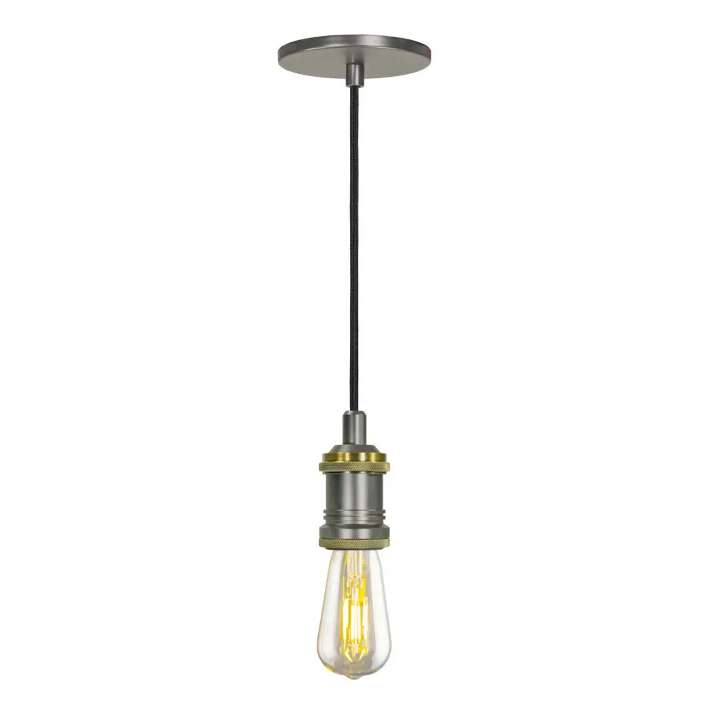 Lamp holder with ceiling plate in brass and metal-covered cable. Standard with 2m of cable. For indoor use only (IP20).Caret squirrel cage lamp 7,7W E27 2300K. Main power 230V 50Hz.
