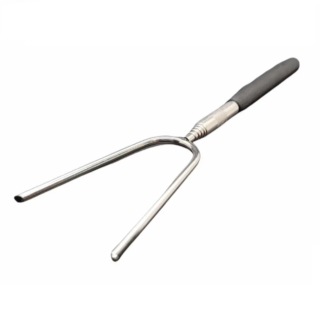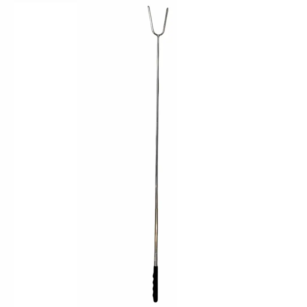 Easily tend to hard to reach places on the grill with this Telescopic Barbecue Fork featuring a strong metal two-prong fork tip with an extendable metal handle and an anti-slip grip. Also works great to roast mashmellows for smores or heat up a hot dog over the camp fire while keeping your distance. Measures approximately 9.5" long when not extended with a 2.5" wide tip. Extends up to 33" long.