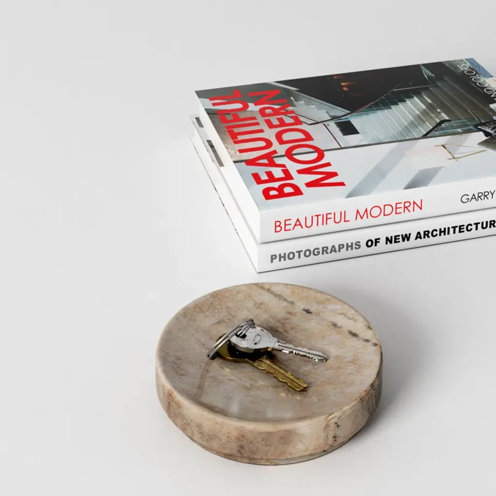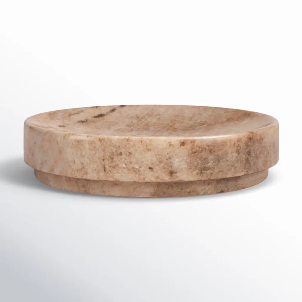 With a shallow, rounded shape crafted from smooth brown marble, this decorative plate exudes earthy calm. As an entryway catchall, it gives a grounding sense of ritual to your arrival at home, while in the bathroom it echoes the swirls of an artisan soap bar. A recessed base lightens the silhouette.
