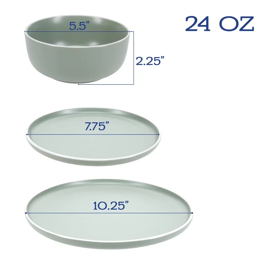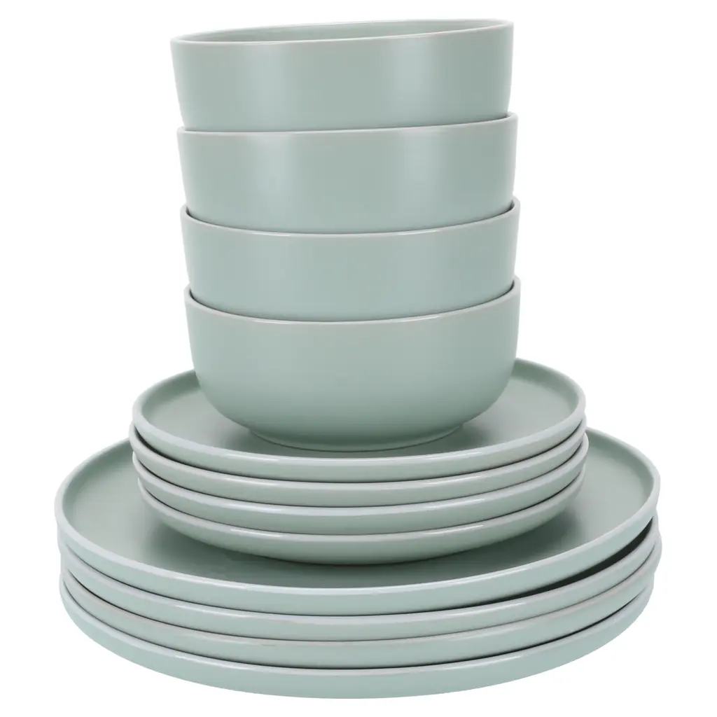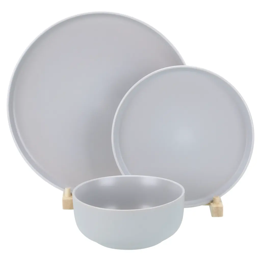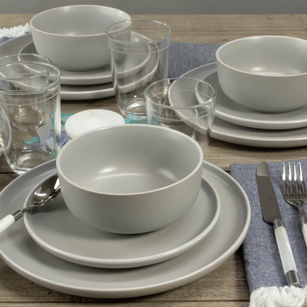 The BIA Cordon Bleu Stoneware Tempo 12-Piece Dinnerware Set in Stone is perfect for all your dining needs. This set includes 4 salad plates measuring 7.75", 4 dinner plates measuring 10.25", and 4 bowls measuring 5.5" x 2.25" with a capacity of 24 oz. With its modern white rim and contemporary Stone color, this set adds a touch of elegance to any table. The semi-matte finish gives it a sleek and sophisticated look. Made of durable stoneware, these dishes are oven safe, microwave safe, and dishwasher safe, making them perfect for everyday use. Whether you're hosting a casual dinner or special occasion, this dinnerware set is sure to impress. BIA Cordon Bleu: Designed With Modern Sensibility For Wherever You Live, However You Cook, And Whenever You Entertain.