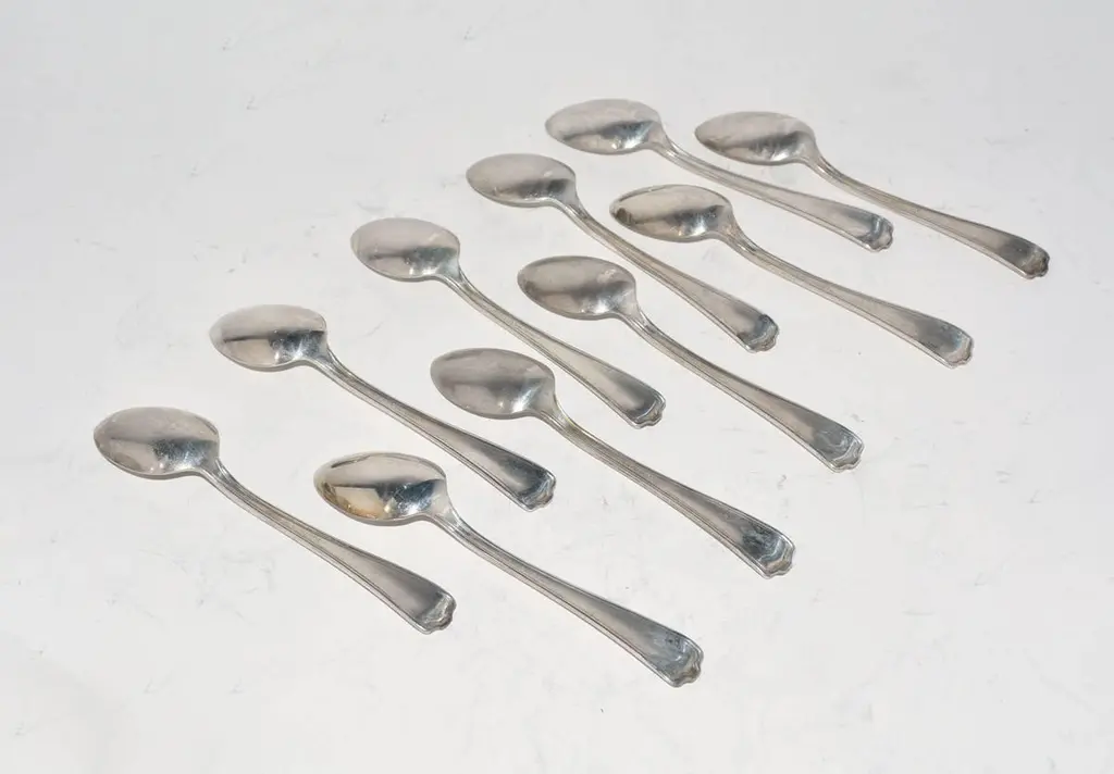 Ten Vintage Silverplated Teaspoons And Five Vintage Silver Soup Spoons.