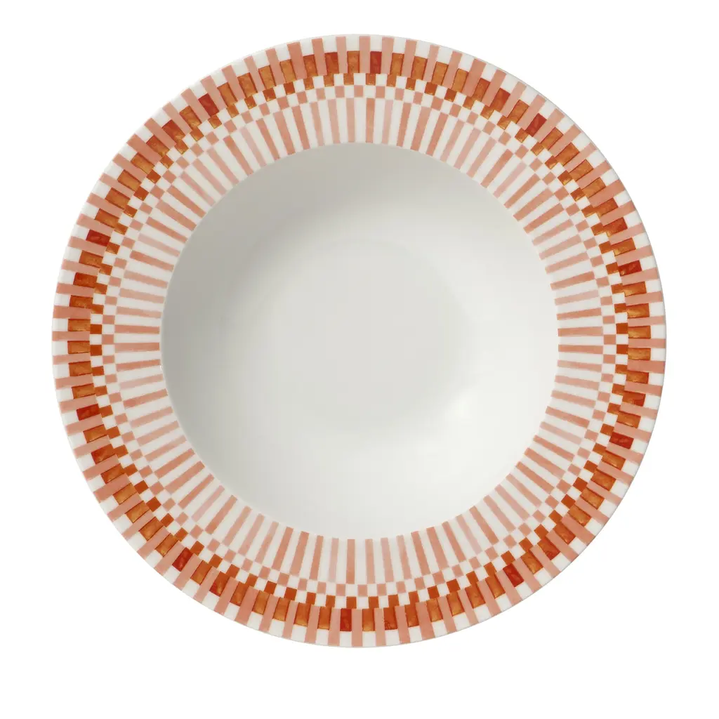 Terra Rosa is a joyful and luminous collection that takes you on a journey from the Pink City to the confines of the Atlas Mountains. With its shades of pinks and oranges, the service is reminiscent of the pastel tones of the bricks of the Pink City and the terracotta floor tiles of the Marrakech's riads, washed out by time and sun.