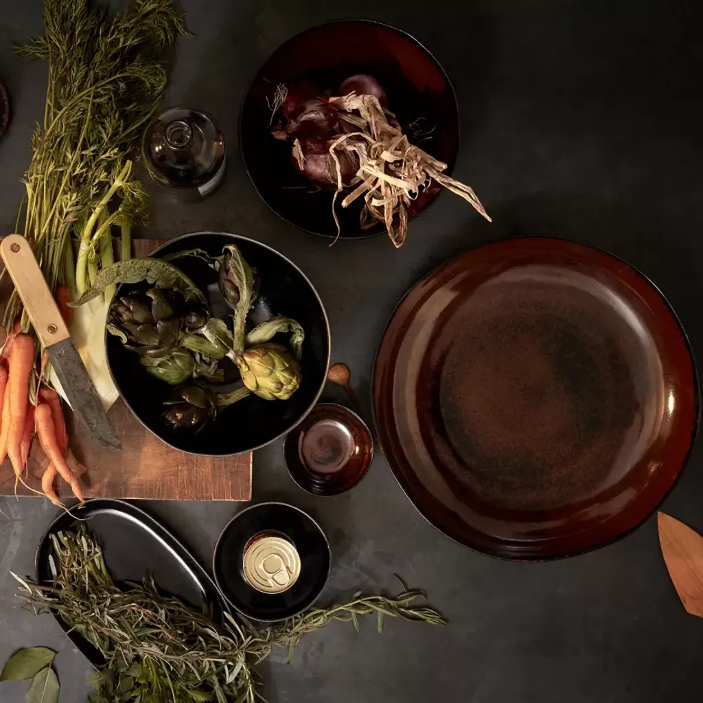 Our porcelain Terra dinnerware is hand-crafted and glazed in our Portuguese atelier. Organic, tactile shapes are refined with a stone glazed finish with a pleasing honed feel, as if weathered by the elements over time. Fine porcelain. Prior to founding L’Objet in 2004, Israeli-born Elad Yifrach was a successful designer in Beverly Hills. He was creating beautiful interiors, but he was frustrated by the limited options available in home accessories, so he set out to create something better. L’Objet’s collections are diverse, but they are almost always inspired by nature and architecture. Many of his exquisite serving pieces rest in a base of hand-crafted gold foliage, other pieces feature intricate design and beadwork, and some of the most striking objects actually look like miniature buildings. And despite the lux feel, much of the line is practical with just a touch of whimsy.