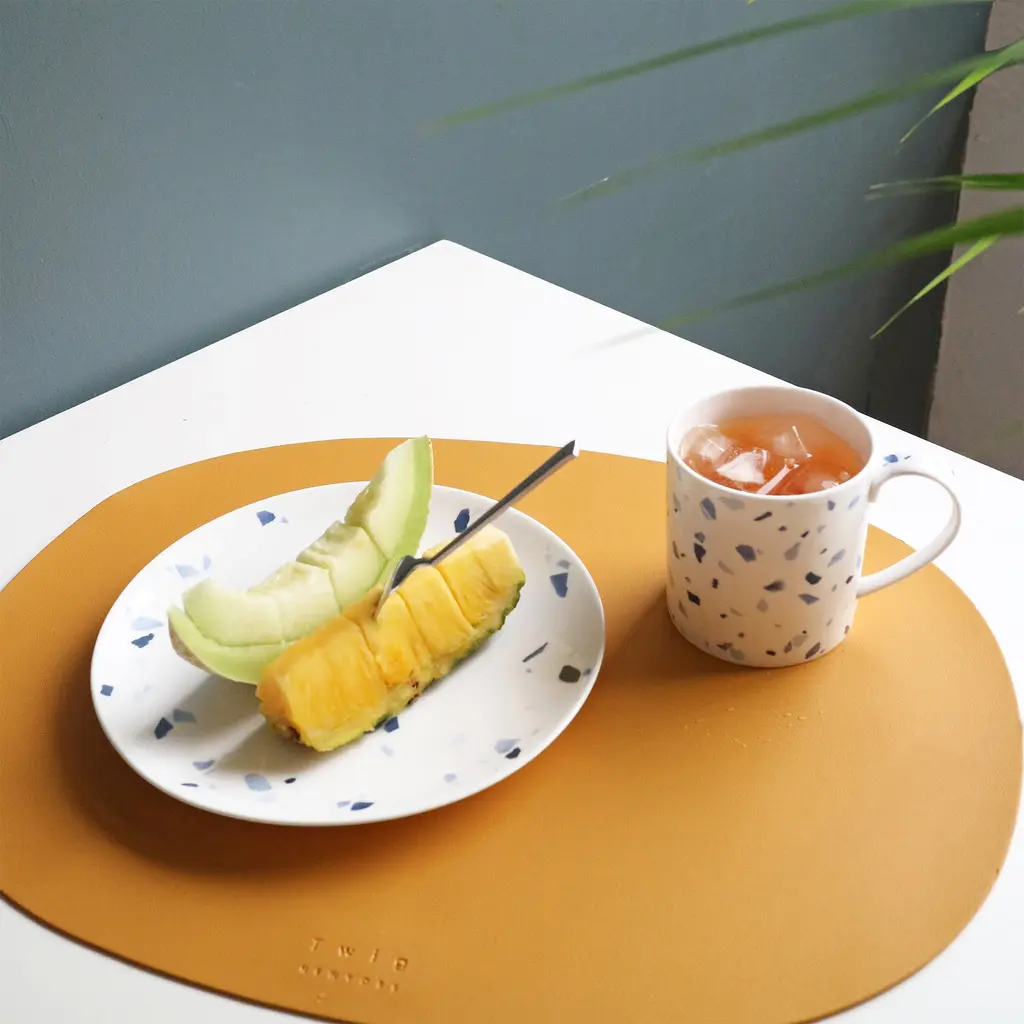 Inspired by the beauty of mosaic-like tiles, the Terrazzo Azzurro Dinnerware collection features blue-toned flecks of color on fine bone china that's both dishwasher and microwave safe.
