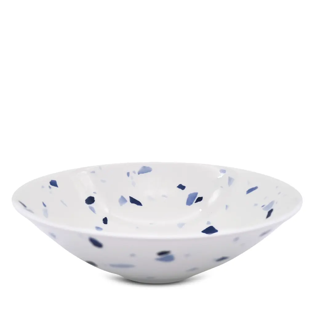 Inspired by the beauty of mosaic-like tiles, the Terrazzo Azzurro Dinnerware collection features blue-toned flecks of color on fine bone china that's both dishwasher and microwave safe.