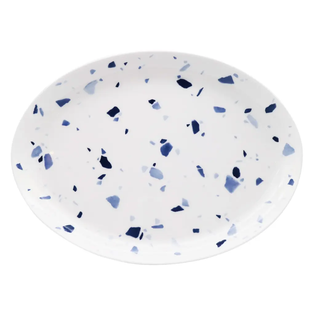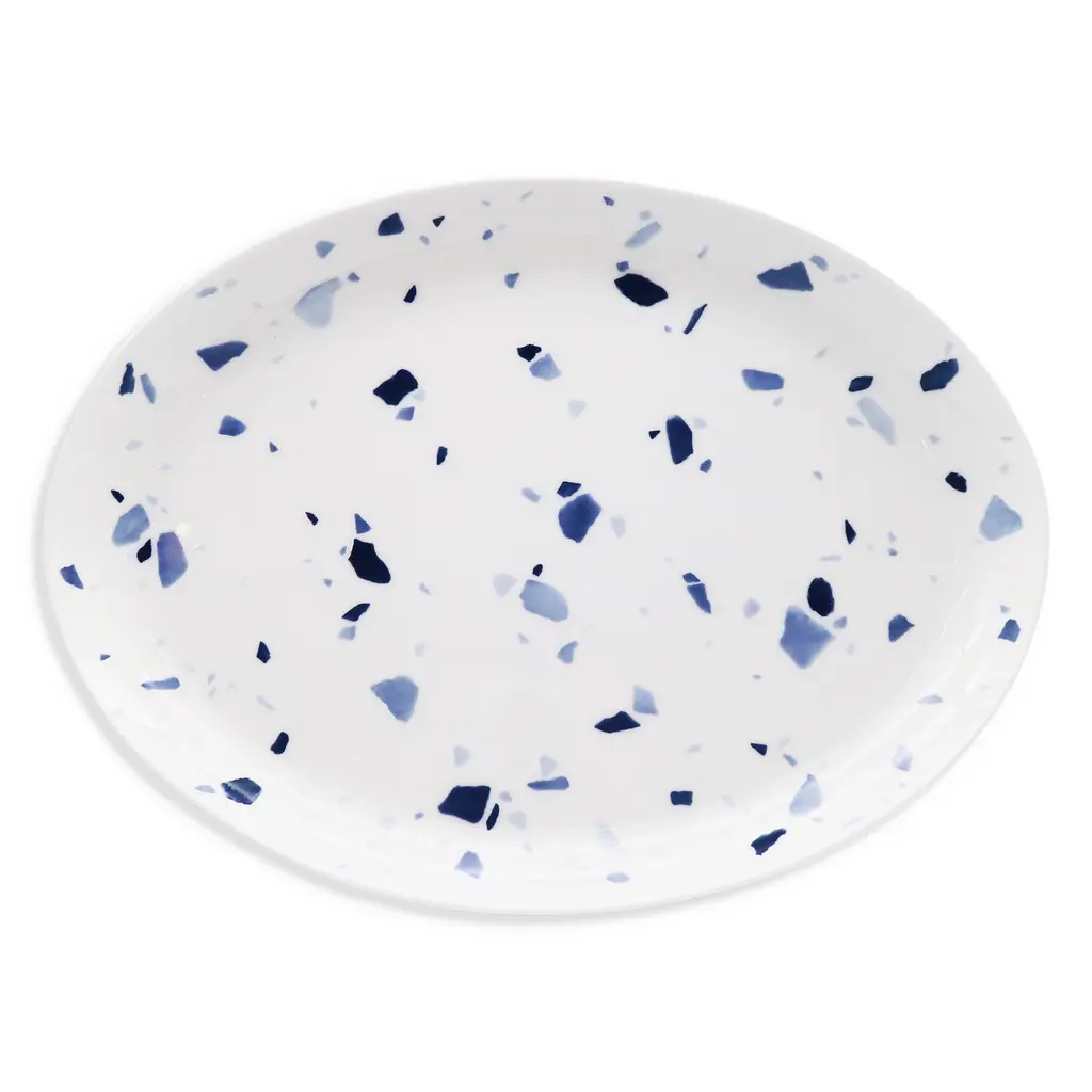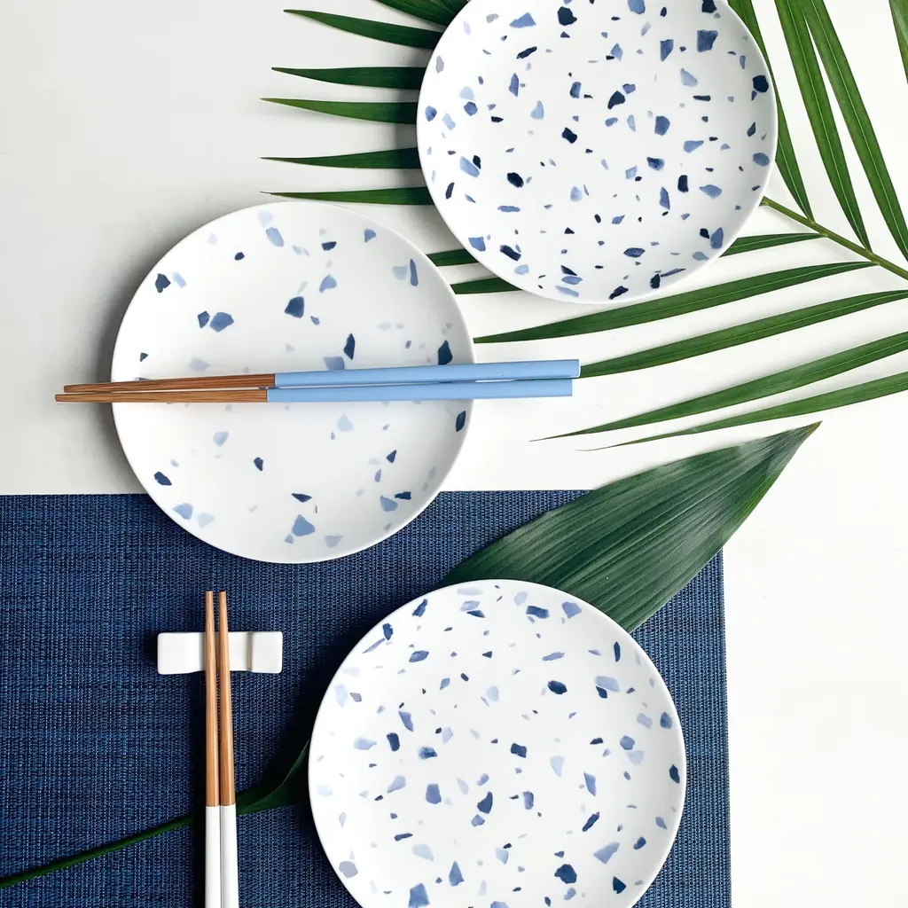 Terrazzo tiles are well known for mixing chips of marble, granite and other stones into the base material for tiles to create visual appeal in otherwise plain surfaces. This style was particularly popular during the art-deco period of architecture. Using the traditional blue-and-white colour combination of Bone Chinaware and the inspiration from this type of surface treatment, Twig New York presents the Terrazzo Azzurro collection. Ideal for Salads and AppetizersTwo plates per boxFine Bone China with hand applied decalDishwasher & Microwave safeTerrazzo Azzurro Collection