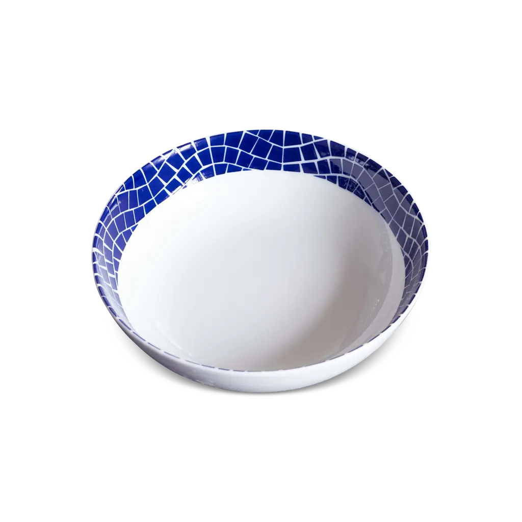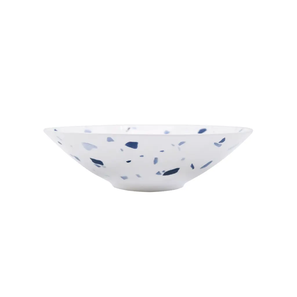 Terrazzo tiles are well known for mixing chips of marble, granite, and other stones into the base material for tiles to create visual appeal in otherwise plain surfaces. This style was particularly popular during the art-deco period of architecture. Using the traditional blue-and-white color combination of Bone Chinaware and the inspiration from this type of surface treatment, Twig New York presents the Terrazzo Azzurro collection. Ideal for Soups and PastaTwo bowls per boxFine Bone China with hand-applied decalDishwasher & Microwave safeTerrazzo Azzurro Collection