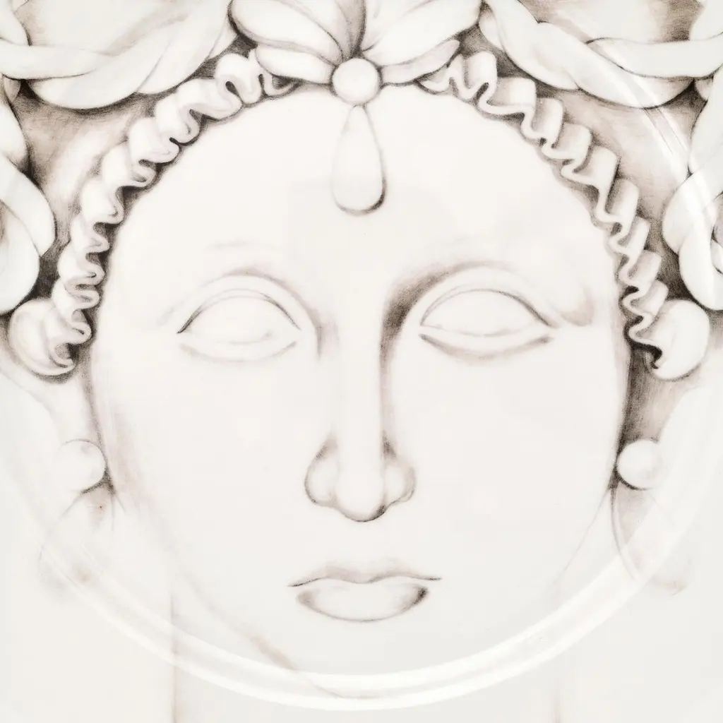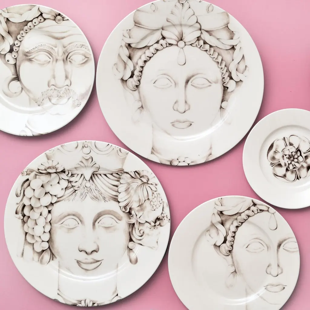 These captivating Catalina dinner plates belong to the Teste di Moro Collection of truly unique Italian dining ware. Inspired by the Sicilian Moor's Head tradition, these incredibly detailed plates are entirely handcrafted in refined porcelain. Showcasing the protagonist's enchanting features in hues of soft grey, this piece will have a sophisticated impact on any refined dining table. The same design matches with the dessert plates belonging to the same collection. Each plate in the series will have slight variations due to its innate handcrafted qualities. Oven and dishwasher safe. Made in Italy.