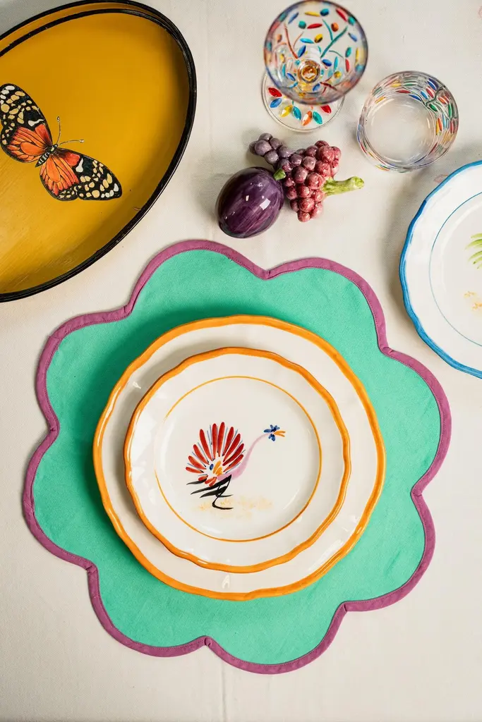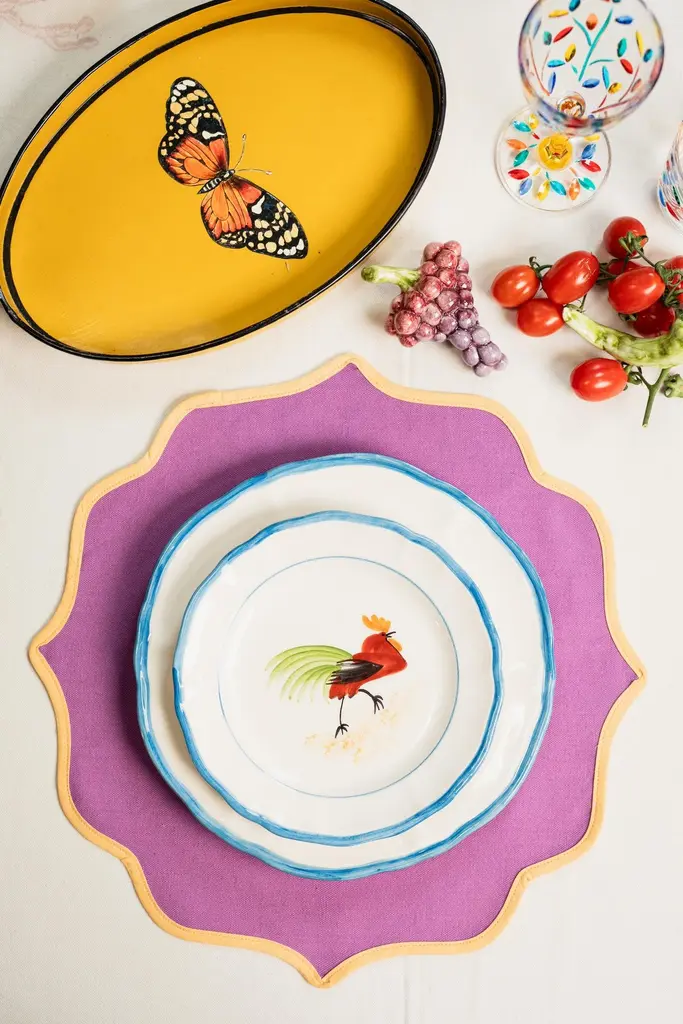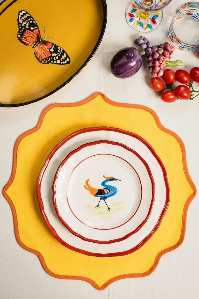 Bring rustic charm and countryside warmth to your table with the Barn Collection Hand-Painted Ceramic Dinner Plate Set. This enchanting set features four distinctively designed dinner plates, each adorned with beautifully detailed illustrations of charming barn birds, capturing the serene beauty of rural life. Expertly handcrafted and meticulously painted in Italy, each plate embodies artisanal excellence, adding timeless elegance and character to your dining experience.Perfectly suited for hearty meals, family gatherings, or festive occasions, these ceramic plates blend function and artistry effortlessly. Their harmonious, earthy designs offer an inviting touch to any meal, whether indoors or al fresco.Ideal for farmhouse-inspired settings, casual dinners, or simply enhancing everyday dining, the Barn Collection dinner plates celebrate the simplicity and beauty of nature.Please note: Each plate is hand-painted and unique; subtle variations and imperfections highlight their artisanal nature and enhance their charm.Made in Italy100% CeramicMix Set of 4 Dinner PlatesØ 27cm