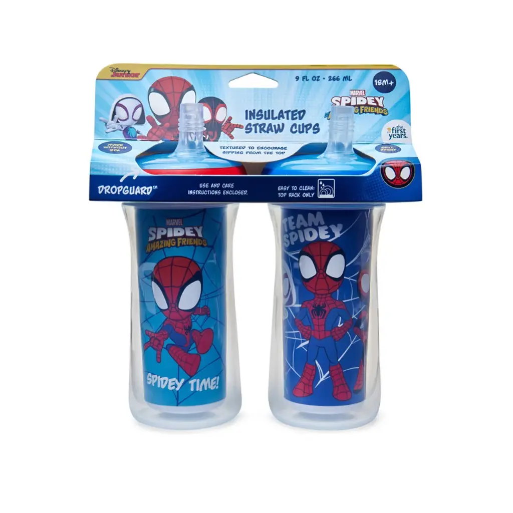 The First Years Marvel 9Oz Spidey & Friends Spill Proof Insulated Straw Sippy Cups - 2Pk