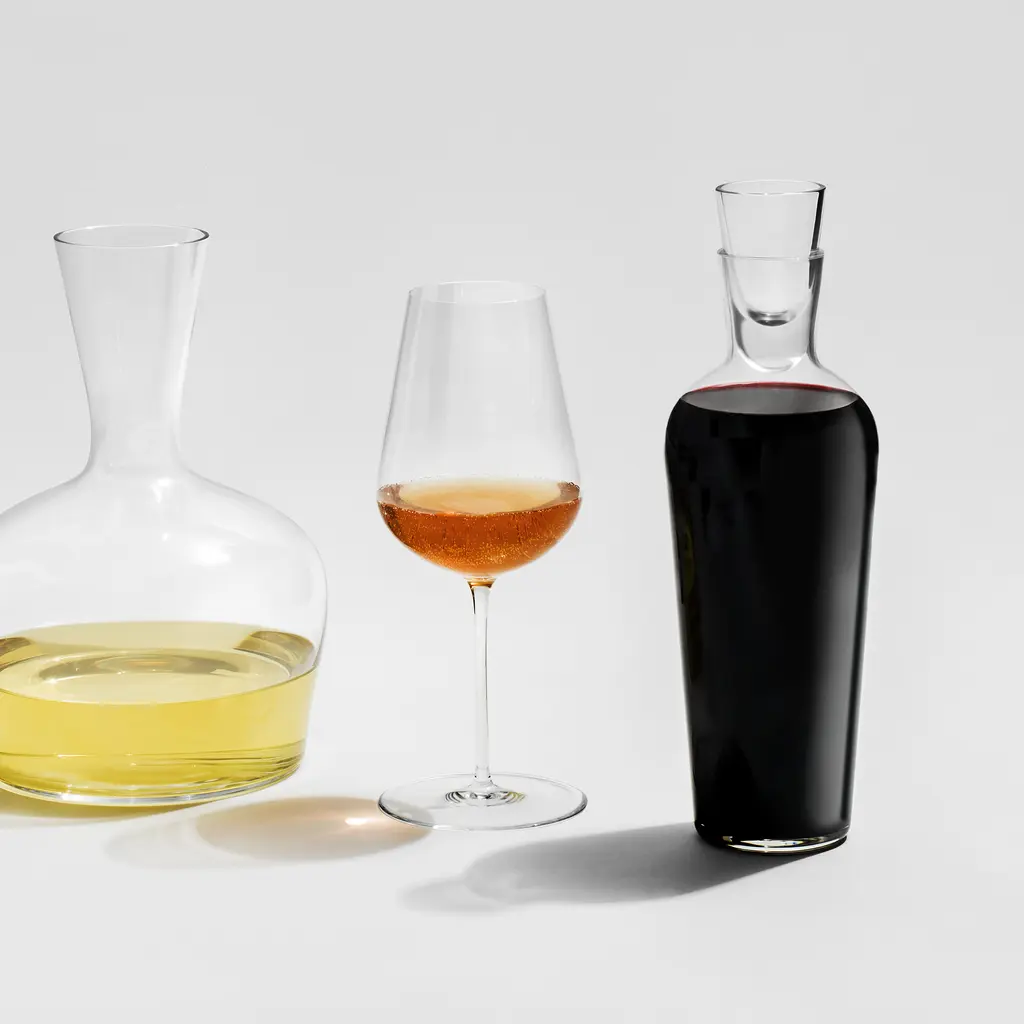 A must-have for wine lovers, the Old Wine Decanter provides an elegant way to drink wine like an expert. Part of a line created in a collaboration between Richard Brendon and world-renowned wine expert Jancis Robinson, this decanter takes every bottle of mature wine to the next level. The specially developed form draws inspiration from a classic bottle. Tall and slender, the decanter allows the user to decant the wine off sediment and minimize exposure to oxygen. Beyond its functional design, the Old Wine Decanter has a refined silhouette that perfectly complements the wine glass from the same collection. A glass stopper adds a sleek finishing touch to the design. Similarly to the other Richard Brendon products, this wine decanter is mouth-blown by master craftspeople.