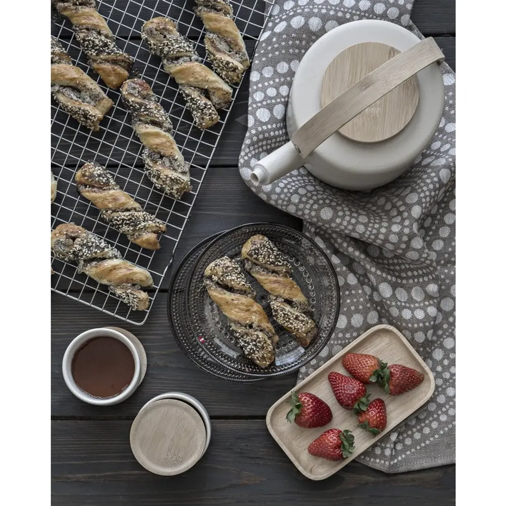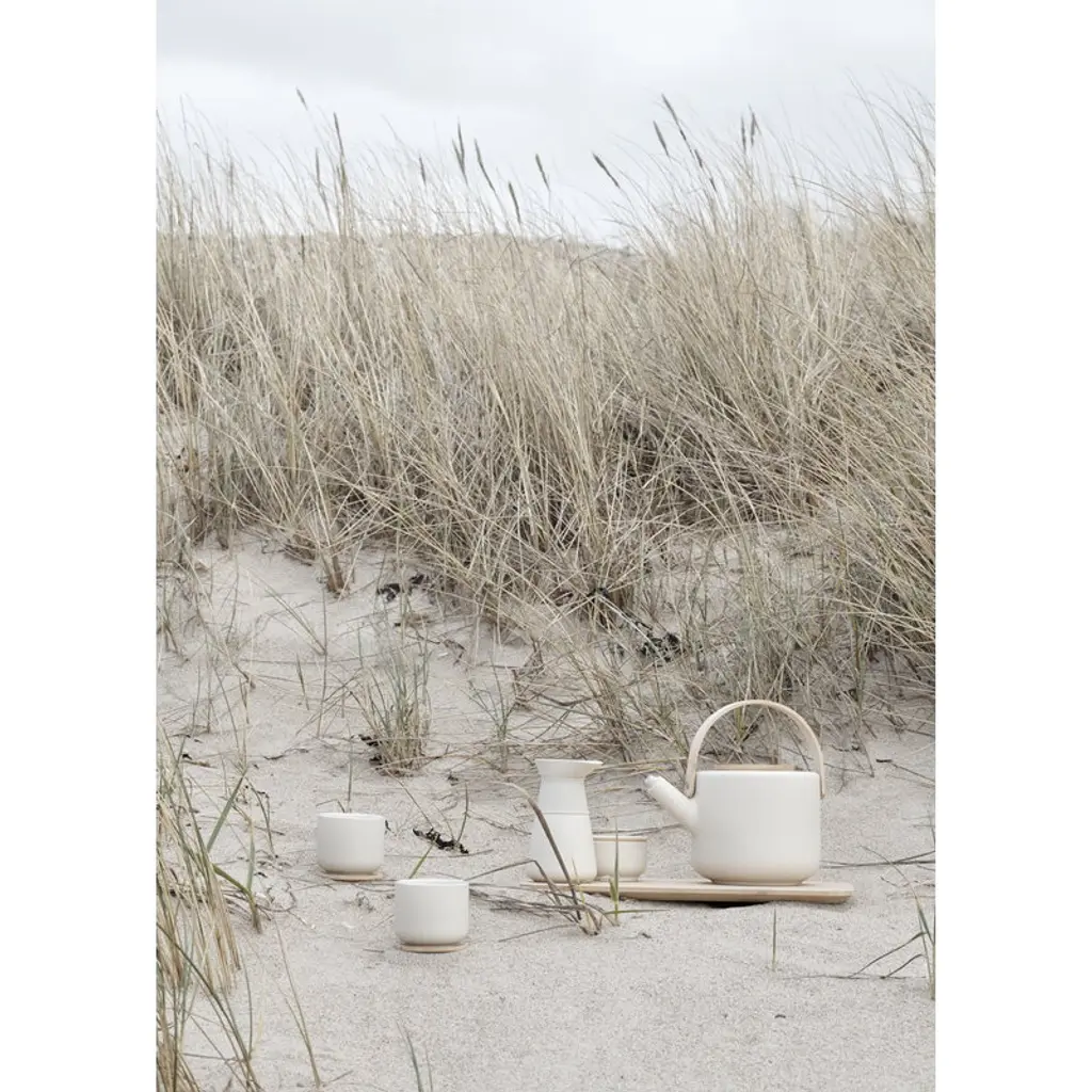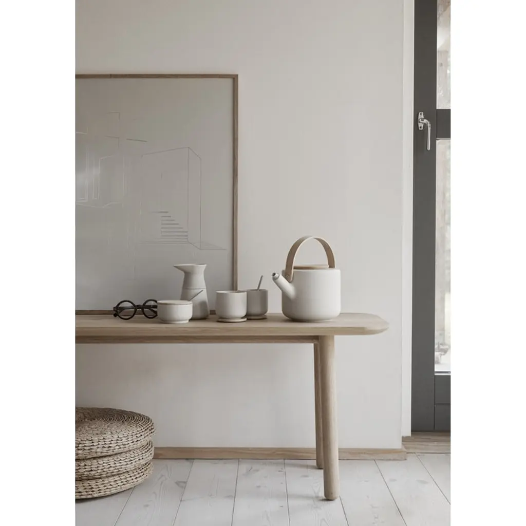 Stelton's Theo tea cup is made of light-colored stoneware, and the inside has been coated with a shiny glaze that creates a beautiful contrast with the matte surface. The bamboo lid doubles as a coaster. The cup can also be used to serve small appetizers, such as miso soup and edamame beans. Designed by Francis Cayouette, the Theo collection adds refined style and calm ambience to tea servings. Theo combines Scandinavian design with Asian influences in a simple yet sophisticated way. The clean lines and natural materials make the collection ideal for many kinds of table settings.