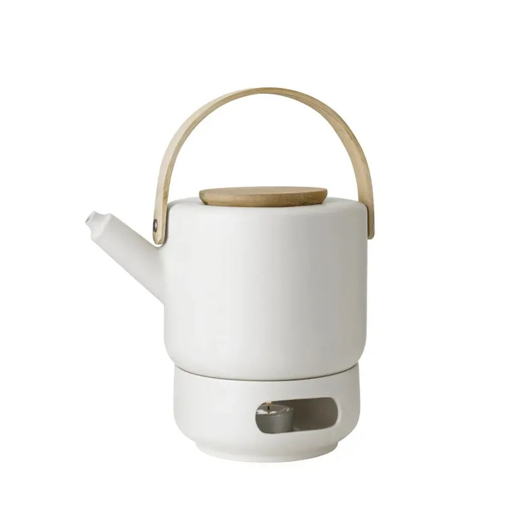 Stelton's Theo teapot is made of light-colored stoneware with a matte surface and perfected with a bamboo lid and handle. Designed by Francis Cayouette, the Theo collection adds refined style and calm ambience to tea servings. Theo combines Scandinavian design with Asian influences in a simple yet sophisticated way. The clean lines and natural materials make the collection ideal for many kinds of table settings.