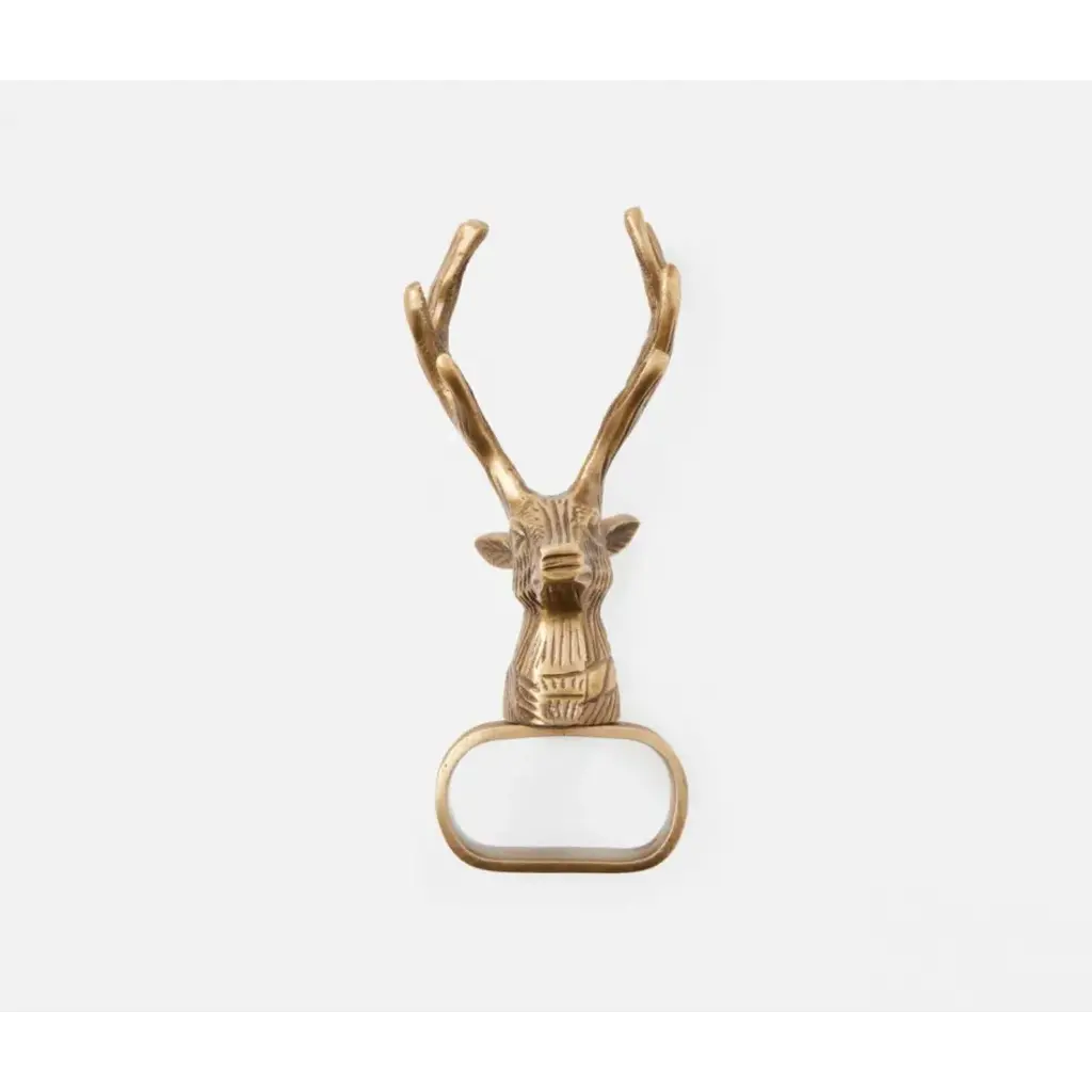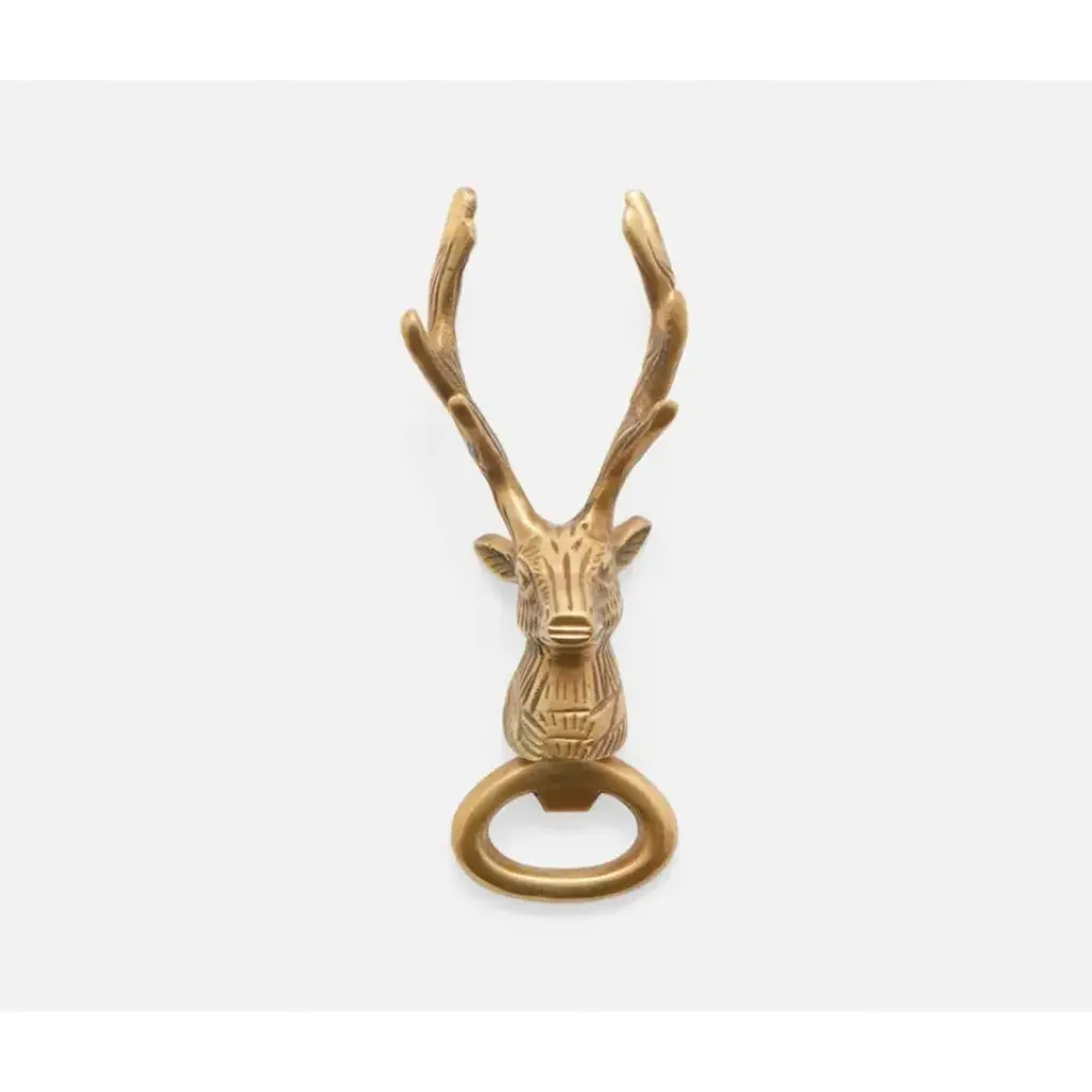 Theodore Antique Brass, Deer Head, Bottle Opener, Pack Of 2