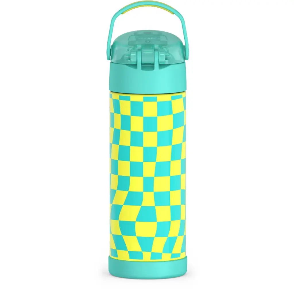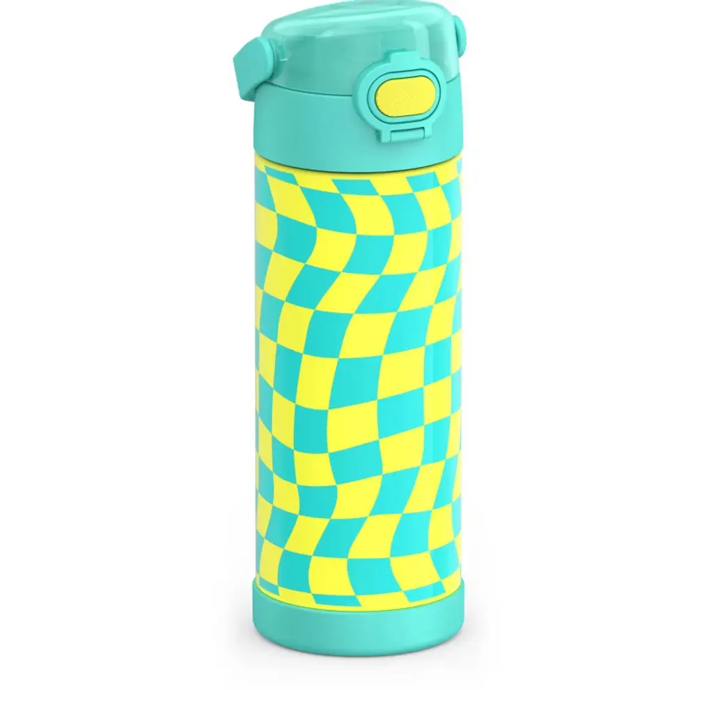 Thermos 16oz Stainless Steel Funtainer Water Bottle With Bail Handle - Teal Checkers