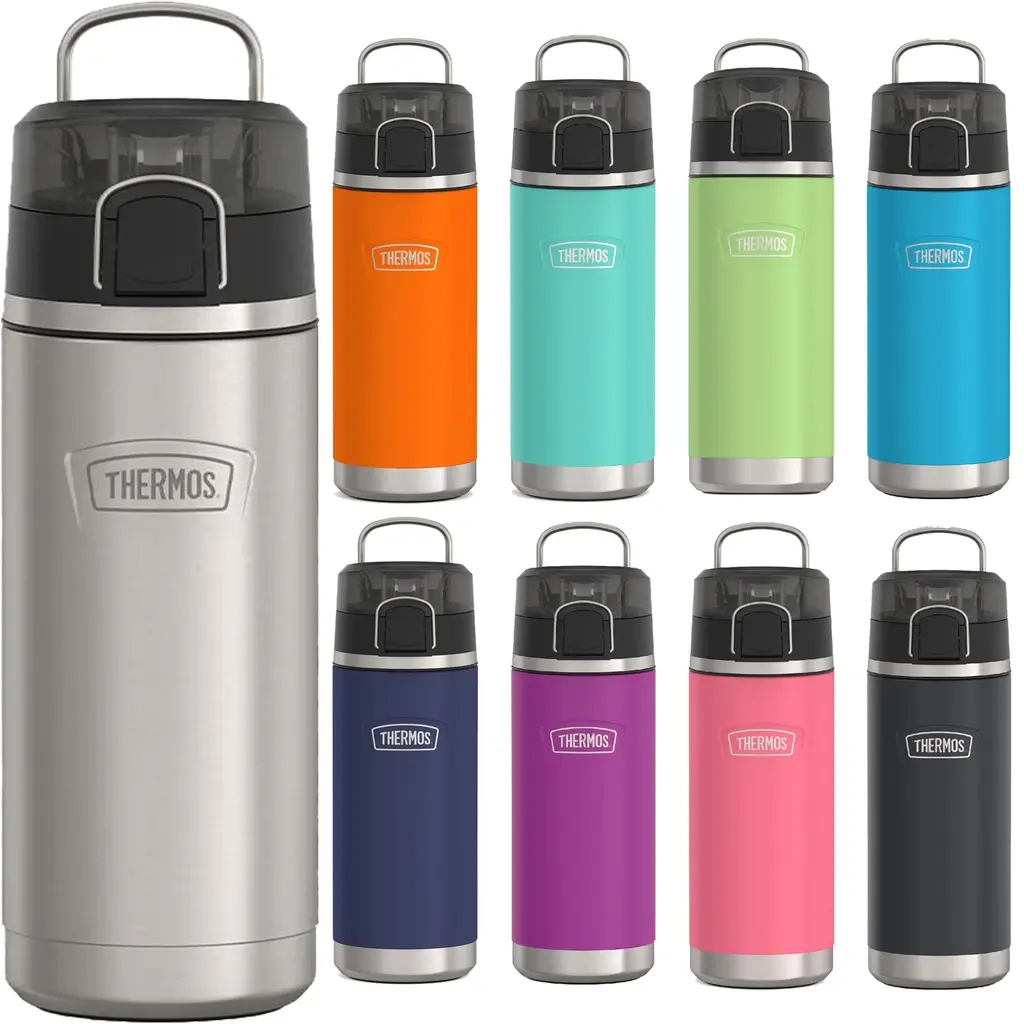 The Thermos 18 oz. Icon Kid's Vacuum Insulated Stainless Steel Water Bottle keeps your child hydrated to take on the day. From the Griptec base to superior vacuum insulation and durable True-Coat finish, the Icon Series by Thermos is a celebration of what has made them thrive for over a century - meticulous design, thoughtful engineering, and a relentless desire to make people's days easier. This bottle is equipped with a Rapidrate high flow spout to keep up with your busy day. No detail has been left behind with this bottle.