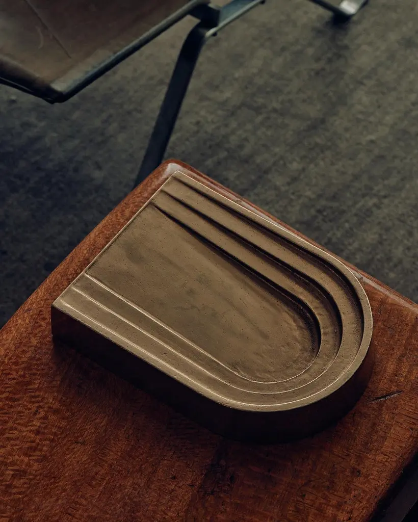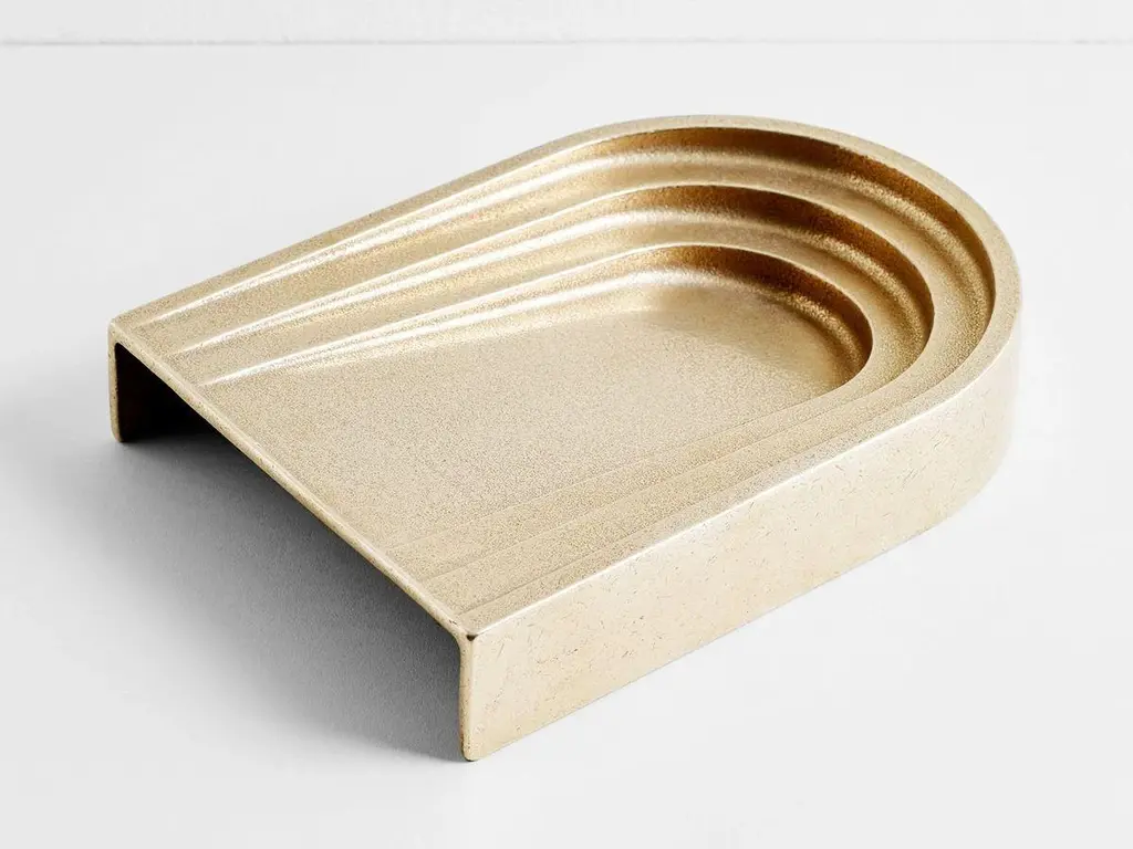 Polished Bronze Thoronet Dish by Henry WilsonDimensions: W 20 x D 5 x H 30 cmMaterials: BronzeThoronet dish, shares its' name and arched lines with the Abby in the south of France. It is made, polished and finished in Sydney, Australia in solid Aluminium.Sand casting is as much about negative space as it is about form, This piece can be stood up as a display object.Each casting is manufactured in small batches meaning slight variations will occur from piece to piece. Production marks may include slight pour ripples or surface pitting.It will arrive with a bright finish but will oxidise and darken over time to reveal a distinctive patina. Simply use a metal polish to restore a like-new finish.Henry Wilson's work combines a rational, democratic utility with an element of sculptural expression. There is a clear form and function in our products, but it’s important they also have feeling. We are interested in the awkward beauty that comes from something made by hand. We like to explore how imperfection can be introduced into an industrial process, to make something at scale that retains a sense of individual charm.Permanent Collections and Exhibitions- Museum of Applied Arts and Sciences, Sydney, Australia- Art Gallery of Western Australia, Perth, Australia- 'Sempering' XXI Triennale, MUDEC, 2016, Milan, Italy.