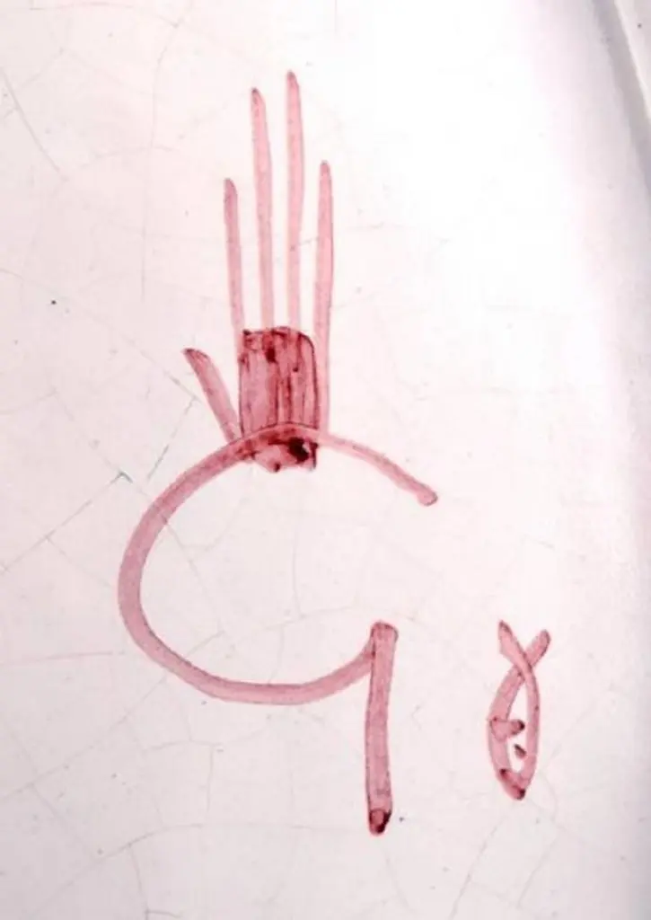 Three large unique hand-painted platters, Stig Lindberg, Gustavsberg studio,Faience, 1940s.Measures: 25.5 cm.Signed with "studio hand."In perfect condition.