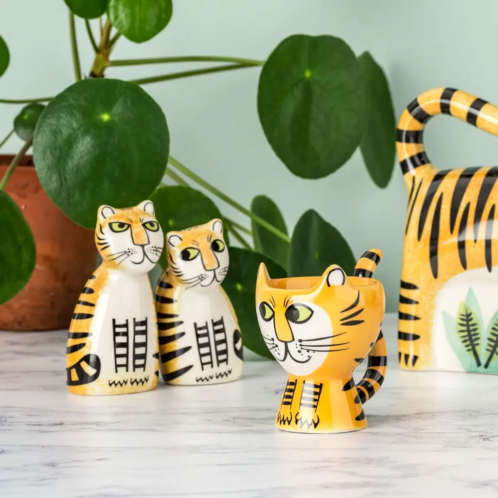 Hannah’s stripey-tailed Tiger Egg Cup is ready to bring big-cat grins to your breakfast table. Handmade from stoneware ceramic, this colourful character is perfect for Tiger fans young and old.£1.00 from every Tiger Egg Cup goes to the Act For Wildlife Living with Tigers project; helping communities in Nepal to live alongside wild tigers. Also in this collection - Tiger Money Box and Tiger Salt & Pepper Shakers