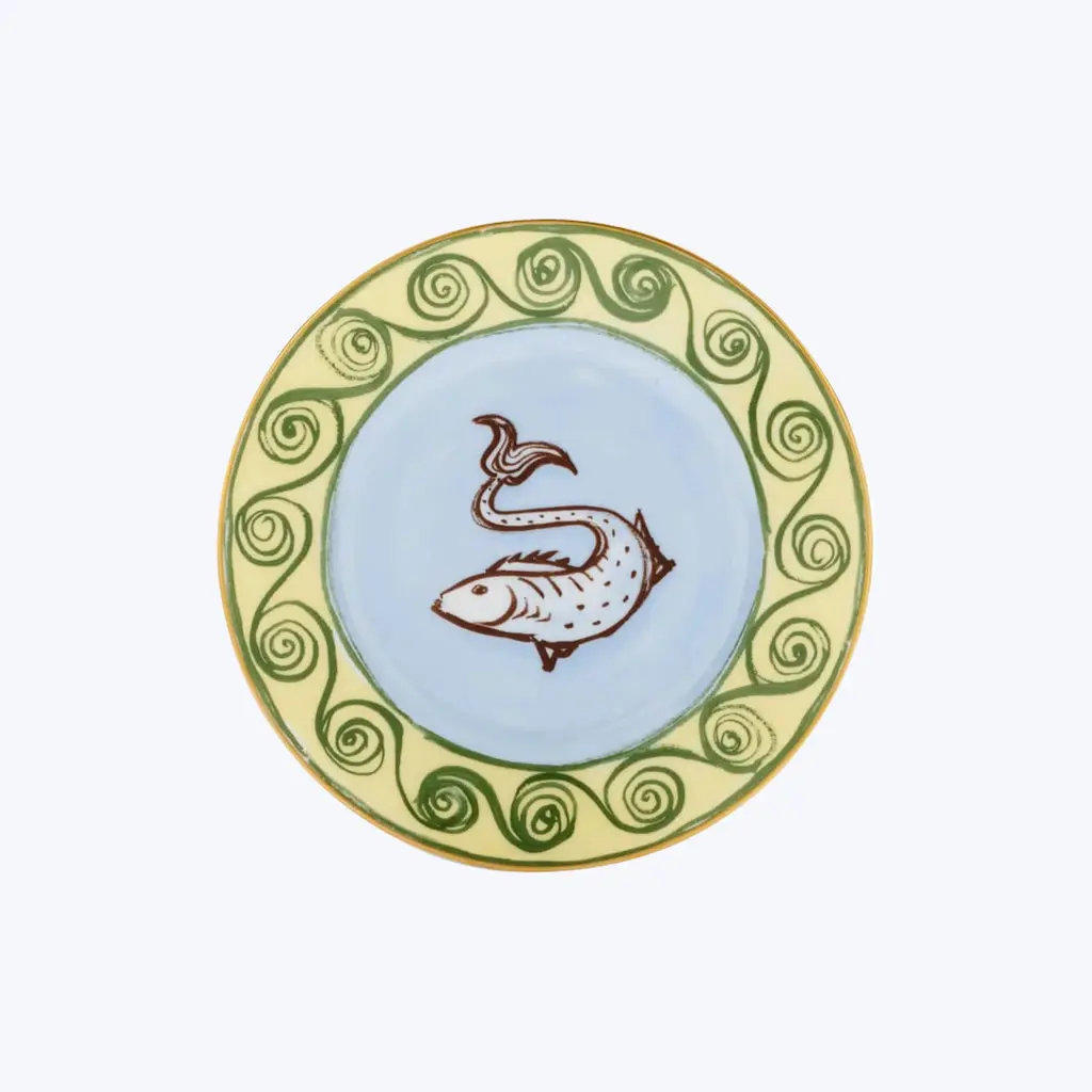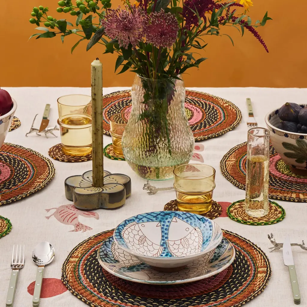 A joyful take on everyday dining, the Tilapia Dinner Plate is hand-painted in Fayoum with playful fish gliding across a dotted aqua sea. Each one is crafted with care, bringing a splash of summer and a sense of fun to the table—perfect for long lunches, easy dinners, and good times all around. * ANŪT Cairo products are entirely handcrafted, so slight imperfections, color variations, and minor size differences may occur.