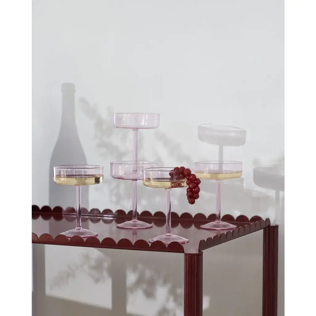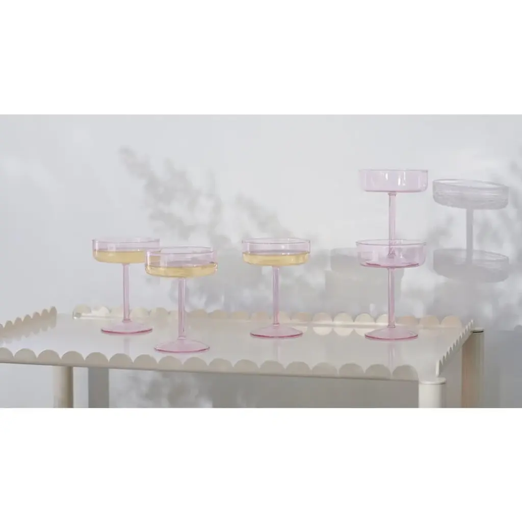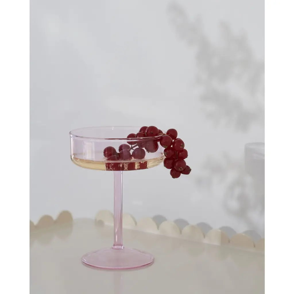 HAY’s Tint coupe glasses charm with their simple design and attractive colors. The glasses are perfect for serving desserts or enjoying cocktails and mocktails. The coupe glasses are made of dishwasher-proof borosilicate glass, which is significantly more durable than normal glass. HAY's Tint collection consists of drinking glasses and wine glasses in a range of beautiful shades, which all go together perfectly. The glasses are sold in a set of two.