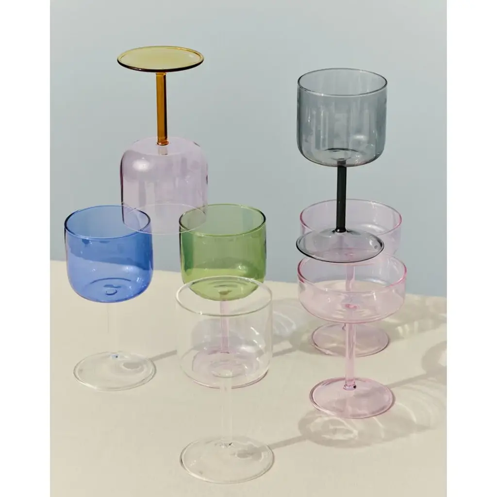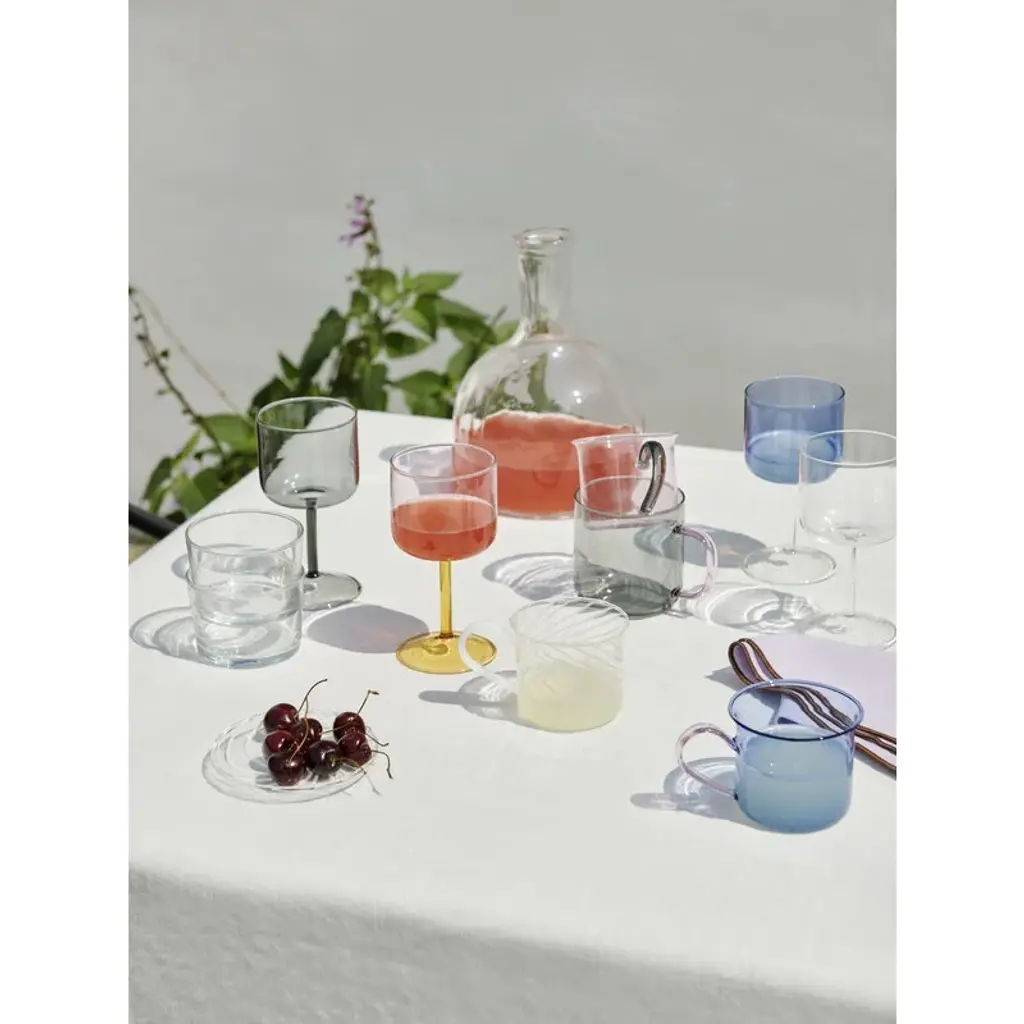 HAY’s Tint wine glasses charm with their simple design and attractive colors. The wine glasses are made of dishwasher-proof borosilicate glass, which is significantly more durable than normal glass. The Tint collection consists of drinking glasses and wine glasses in a range of beautiful shades, which all go together perfectly. The glasses are sold in a set of two.