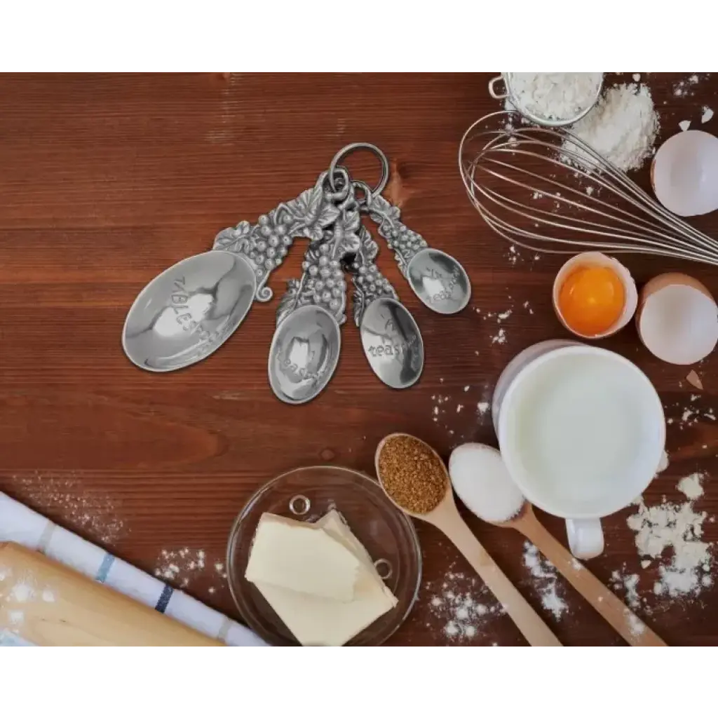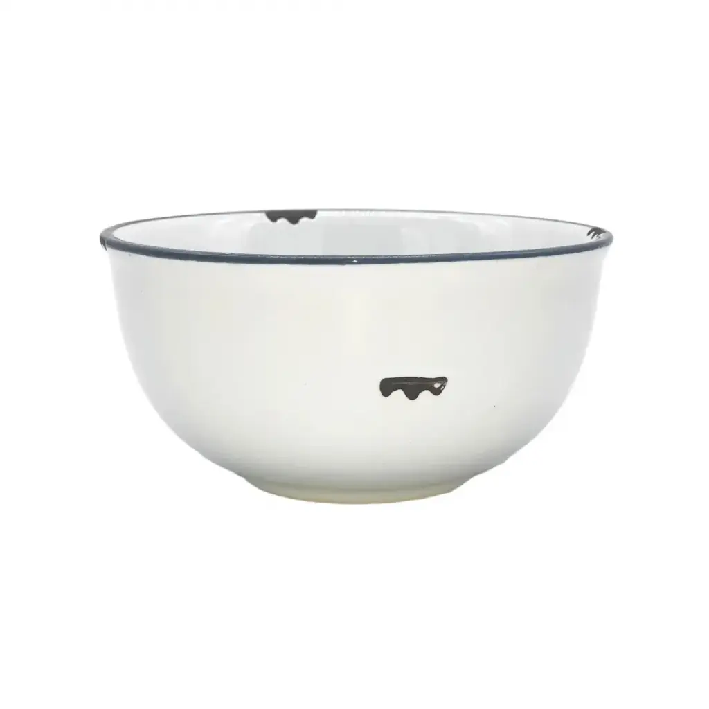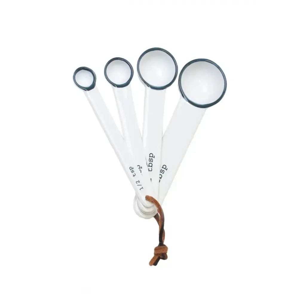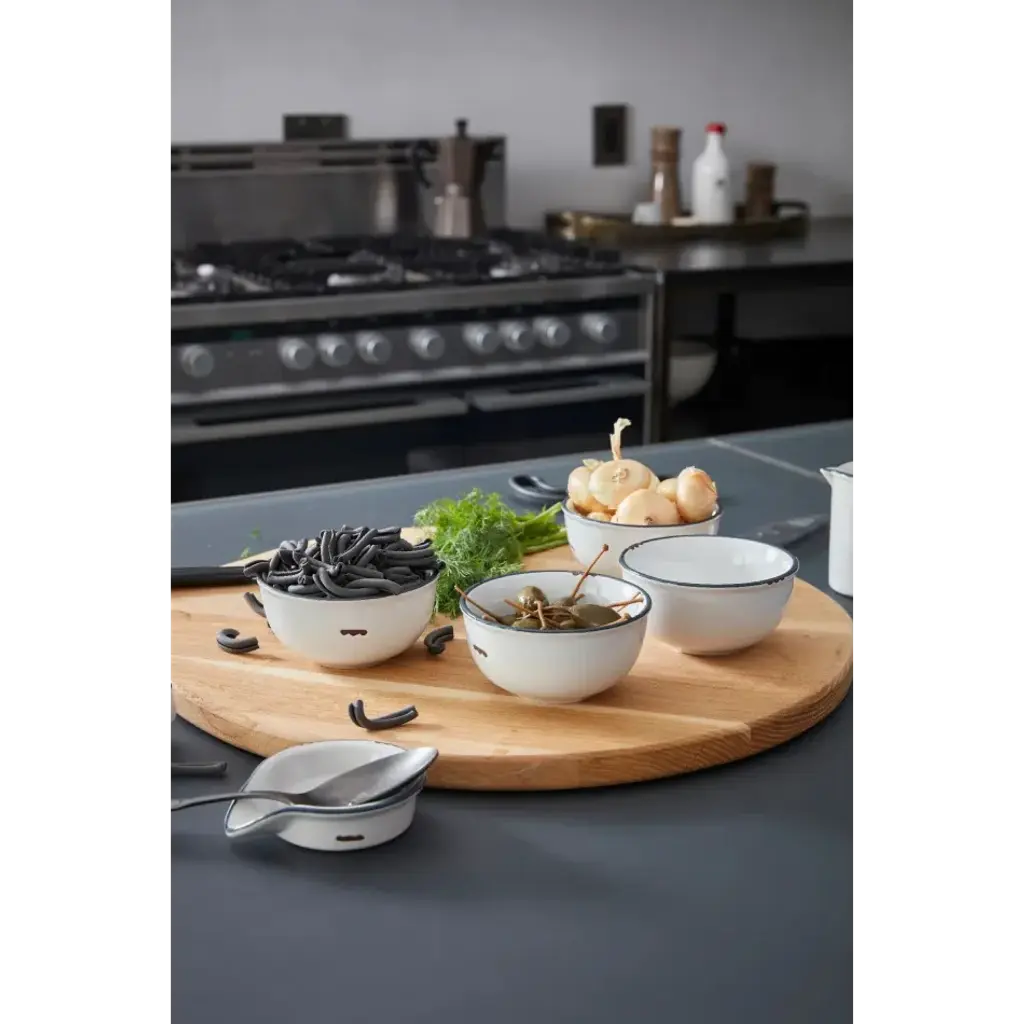 Tinware 7-Pc Prep Set White W/ Slate Rim (4 Small Bowls, 1 Measuring Spoon Set, 1 Creamer, 1 Spoon Rest)