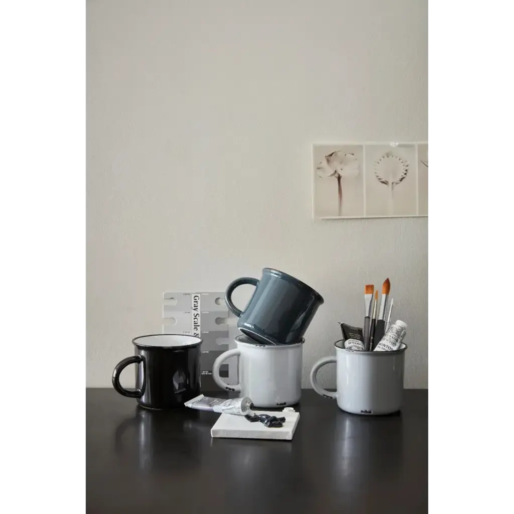 Tinware Mug Set Greyscale (Black, Slate, Light Grey, White W/ Slate Rim)