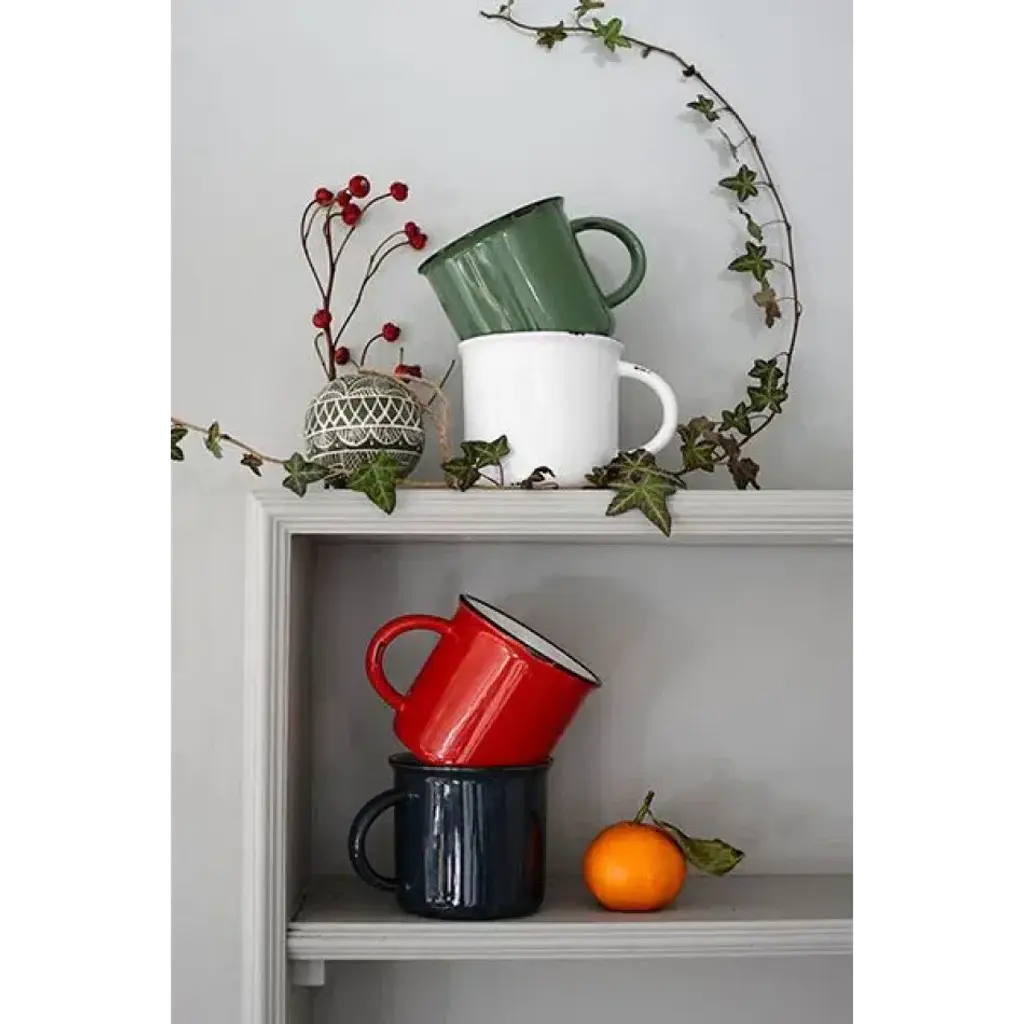 Tinware Mug Set Winter (Includes Red, Green, Slate, White W/ Slate Rim)